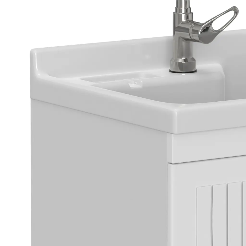 Wyndenhall Bishop Laundry Cabinet With Faucet And Sink - 28" W X 21.7" D X 35.8" H - Pure White