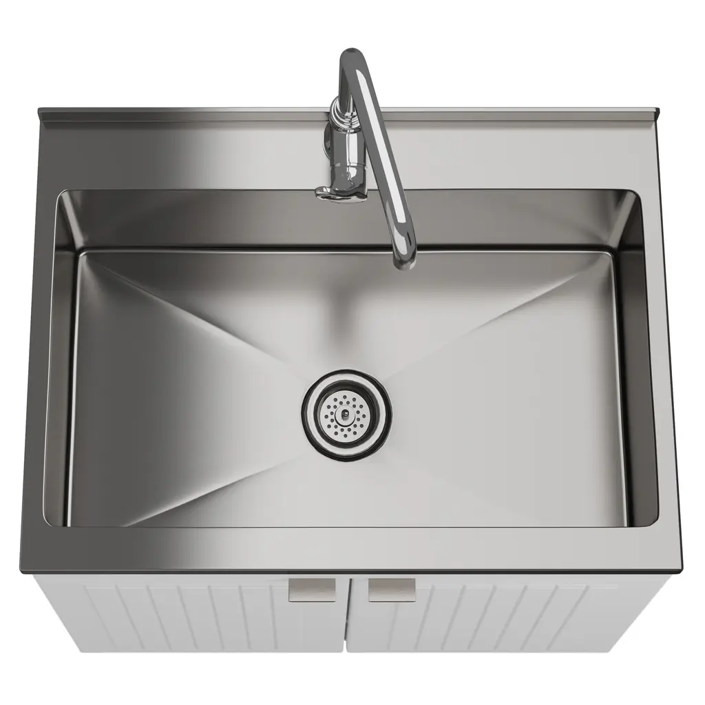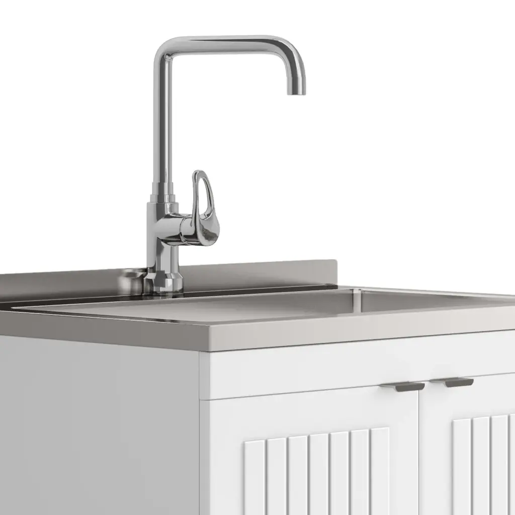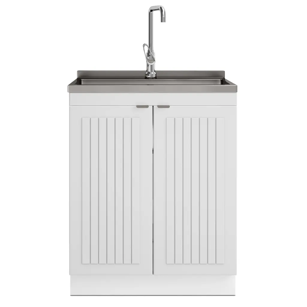 Simple clean lines define the Bishop Laundry Cabinet. With paneled doors, high arc faucet and sleek door pulls, the Bishop Laundry Cabinet brings both functionality and stylish design to your laundry room.