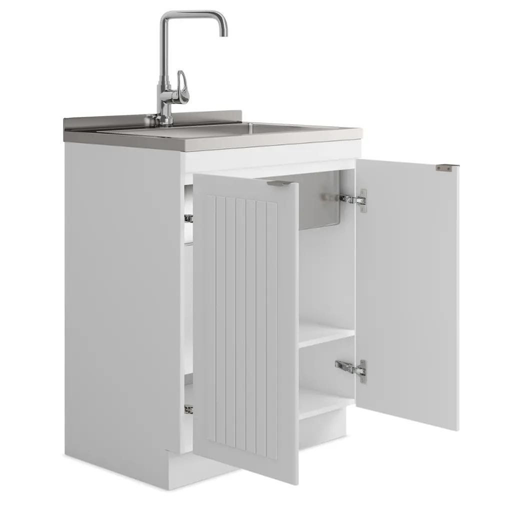 Wyndenhall Bishop Laundry Cabinet With Faucet And Sink - 28" W X 34" H X 19.7" - White