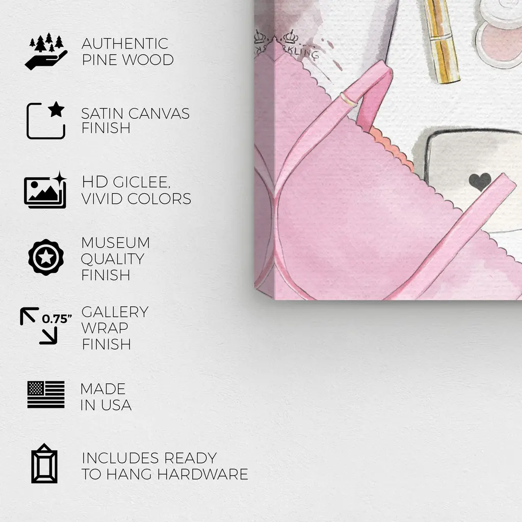Oh, My Bag, is a skillfully made Glam art piece by real artists. With an overarching Pink color, this fine art print by Wynwood Studio Canvas is the perfect finishing touch to your home décor theme. Features: This art piece has a vertical orientation Fashion design with a Makeup theme to bring you the perfect wall art Sustainable and forest friendly canvas print Professionally hand stretched in a 0.75 inch-thick sustainable wood frame Arrives ready to hang with pre-installed hooks for easy hanging. Nail and hanger also included Printed using ultra-premium and fade resistant inks to guarantee high definition and vivid colors Available in several size options Proudly made in the USA