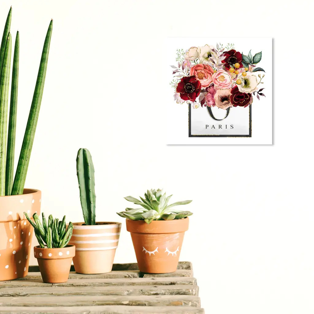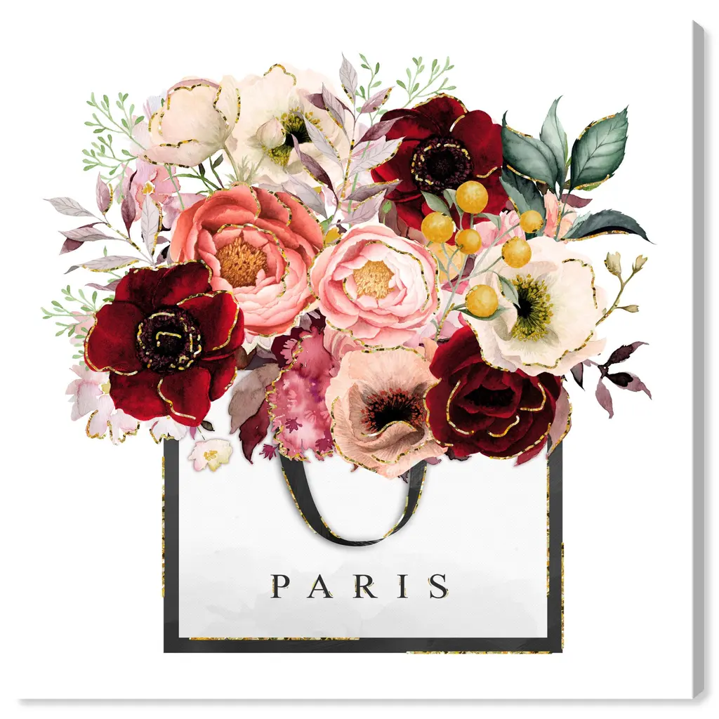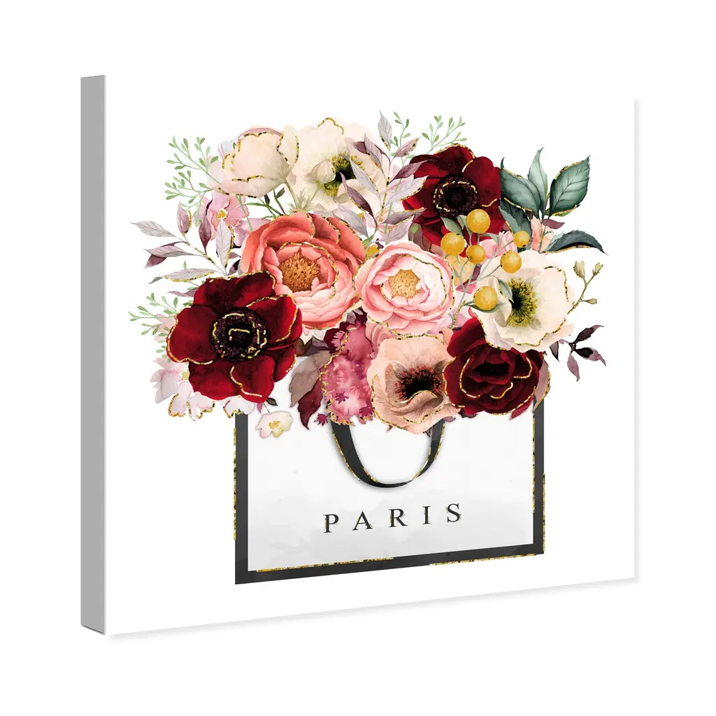 Wynwood Studio Canvas Fashion And Glam Paris Flower Bag Red Red And Maroon Shabby Chic Wall Art Canvas Print - 12 X 12