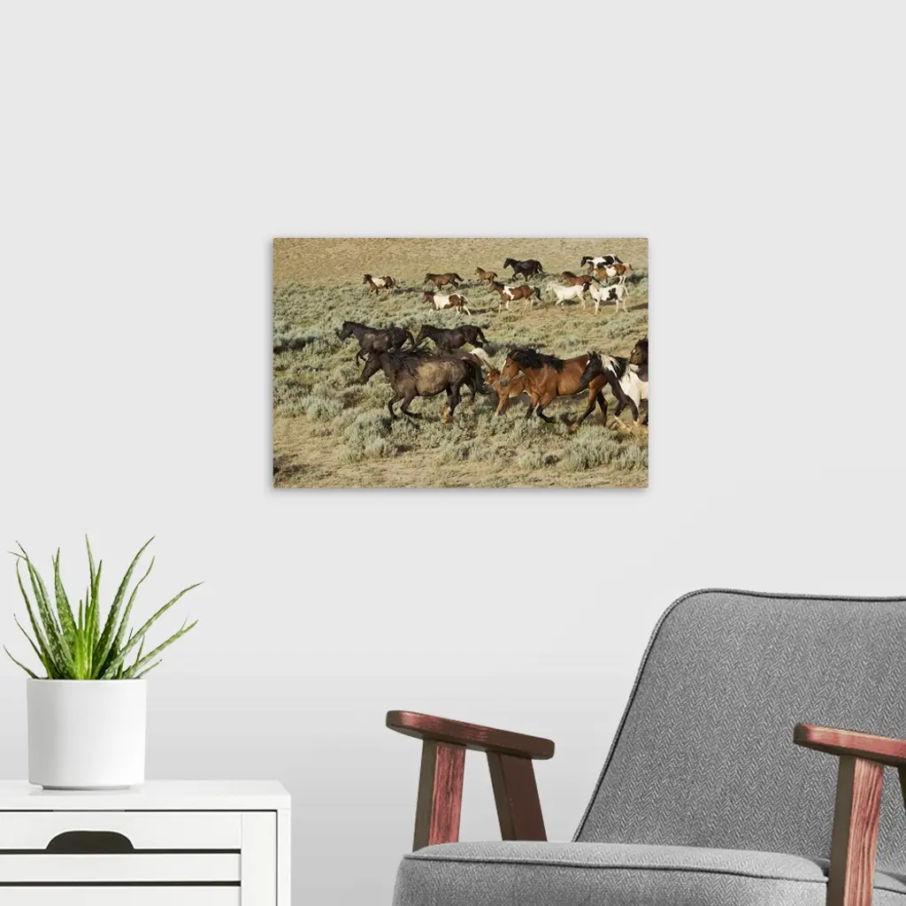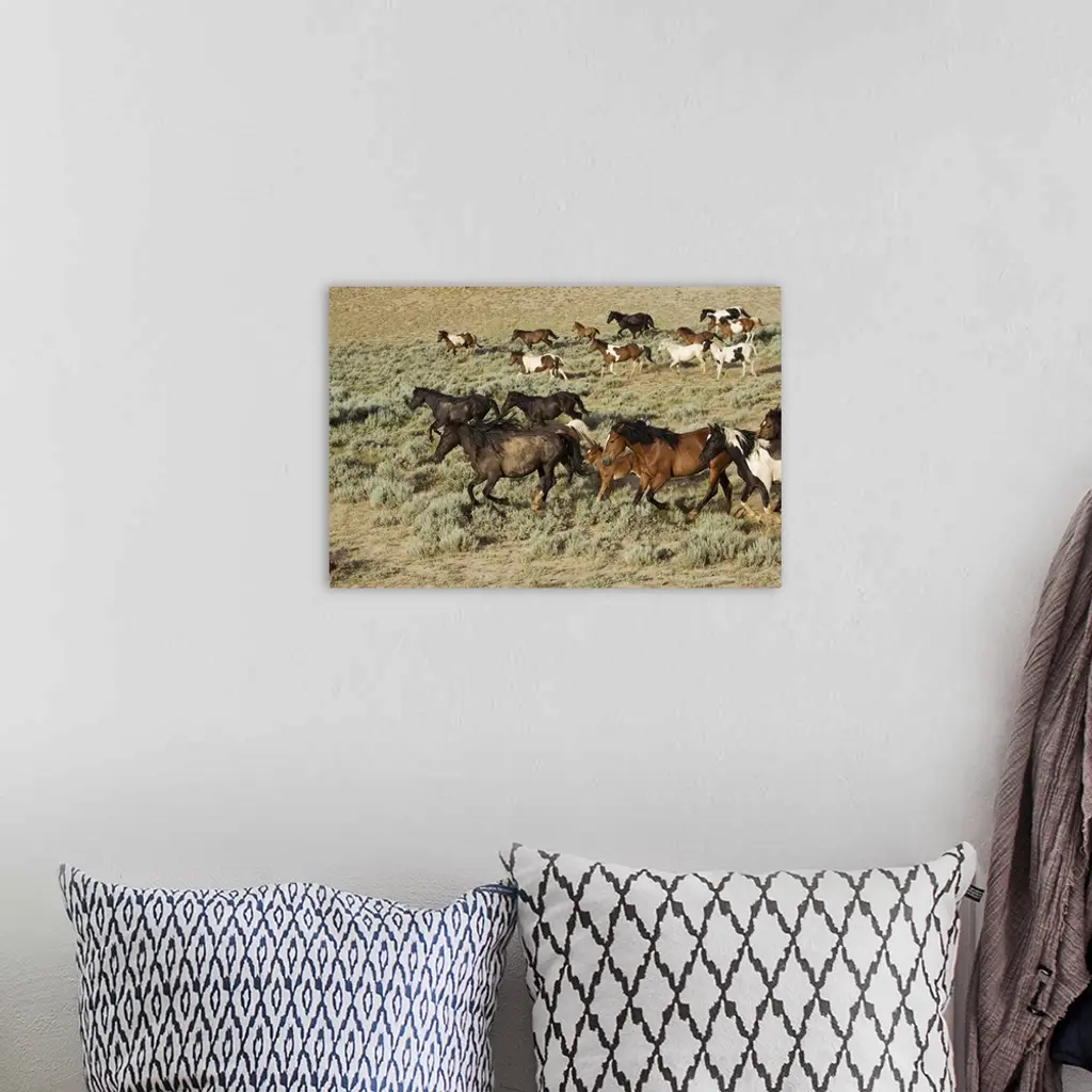 Wyoming, Cody, Wild mustangs in the McCullough Peaks wall art for home and office decor. Discover canvas art prints, photos, mural, big canvas art and framed wall art in GreatBigCanvas.com's varied collections.