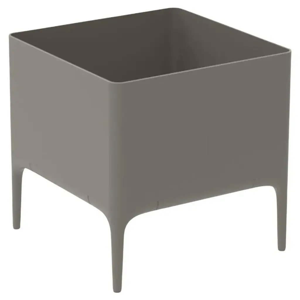 Xaloc cream 45 pot by mowee dimensions: d45 x w45 x h45 cm material: aluminium weight: 8 kg also available in different colours and finishes. Xaloc synthesizes the lines of interior furniture to extrapolate to the exterior, creating an elegant and versatile collection that can coexist in both contexts. The textile of its elements also want to represent this concern to provide the exterior with the warmth of the interior furniture. The name xaloc comes from the wind with the same name. A strong wind typical of the mediterranean area. A wind capable of eroding the environment it meets. The shapes of the collection represent this wind-induced erosion that generates natural and harmonic forms.