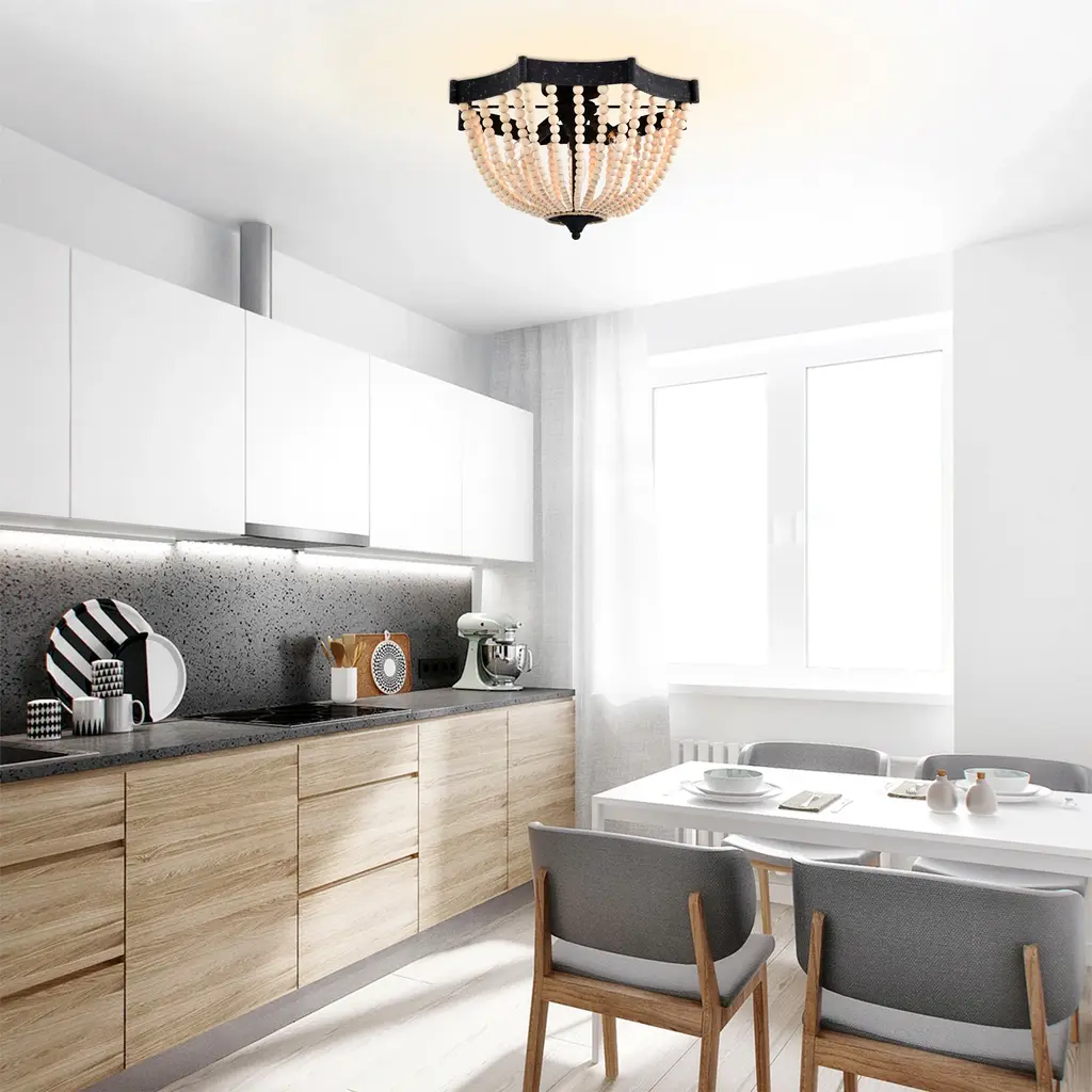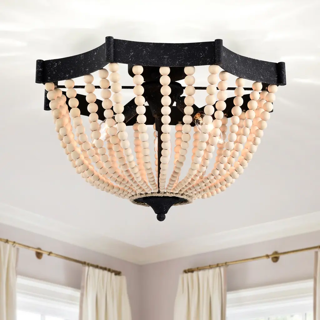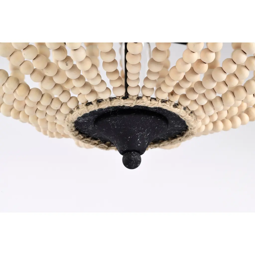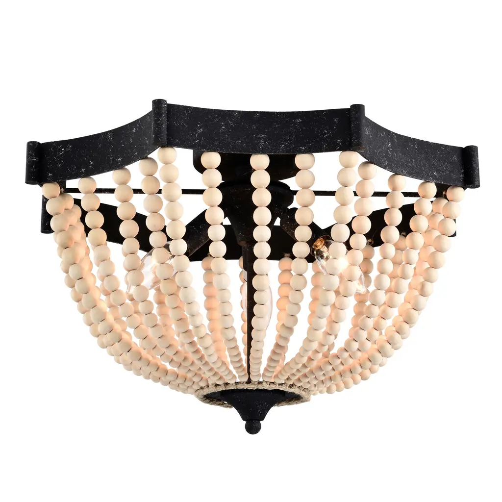 Xasan 19 Inch Natural Beads Bohemian Semi Flush Mount 3-Light - Rustic Black And Natural
