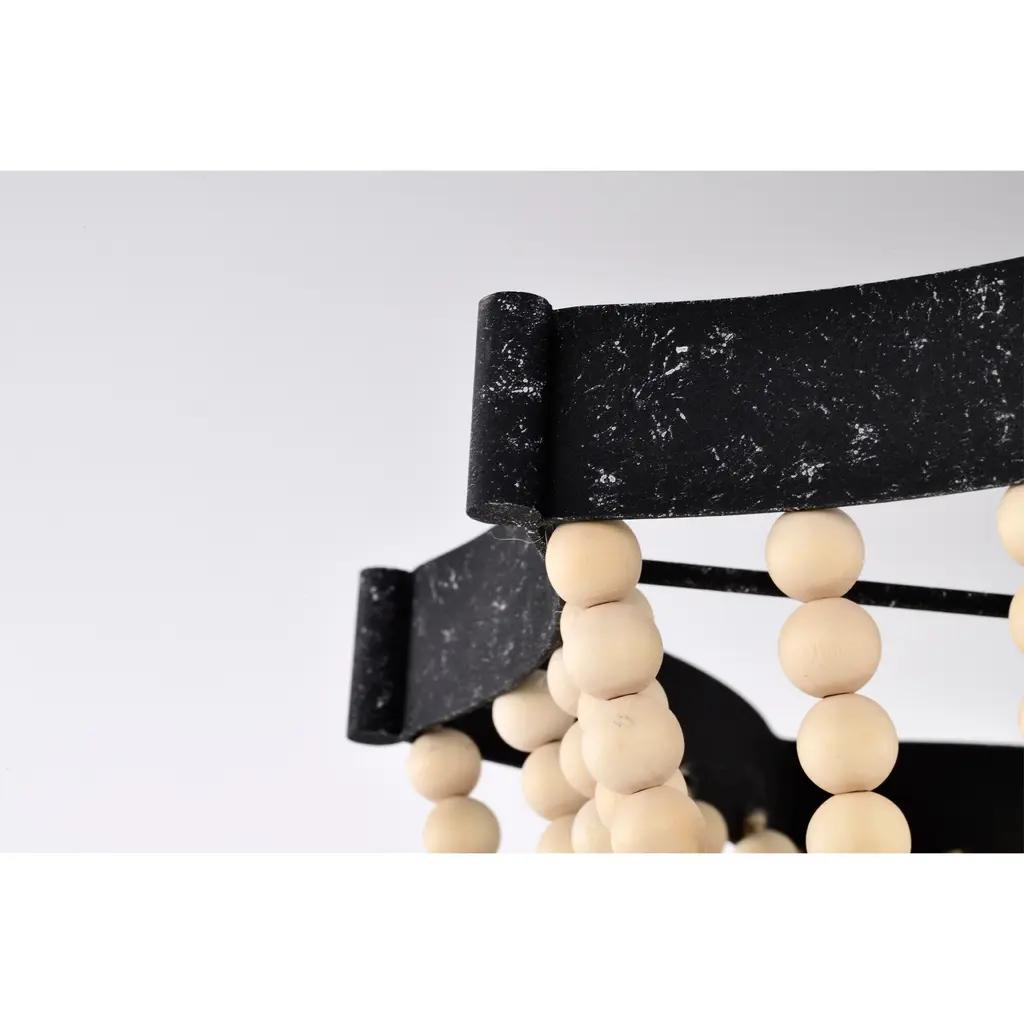 A traditional empire shape meets modern elements. A geometrics-shaped painted frame gives this fixture a vintage, distressed look, while the beads lend to a bohemian style flare. A perfect combination of texture and materials creates a rich visual impact on any space.Features:Dimensions: