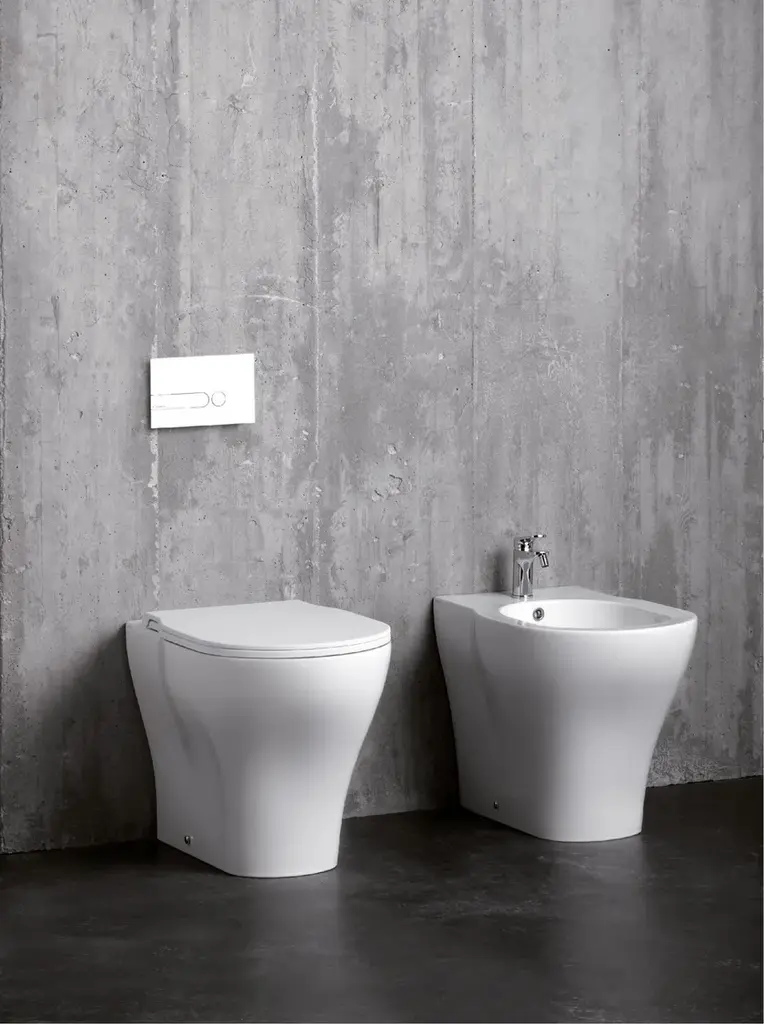 Floor-mounted toilet with P-trap convertible to S-trap by means of a plastic elbow bend, White gloss finish, Azzurra Workshop Design.XL was born from the need of a line of extra-large sanitary fixtures to dedicate to very spacious bathroom environments. A new and practical response to new lifestyles by which Azzurra is fully enthused, introducing in the catalogue a toilet and bidet set that is 30% larger and more comfortable than the standard one.Extra-large dimensions in both the floor-mounted and wall-hung versions make the XL modern sanitaryware series the tailor-made solution for those who prefer to opt for comfort. Designed for larger bathroom environments, the XL collection suggests new routines and new lifestyles which Azzurra Ceramica endorses by introducing a 30% larger and more comfortable WC and bidet set in its catalogue. The WCs include Easy Clean and Water Saving technologies.