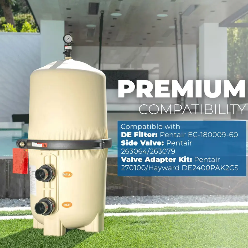 XtremepowerUS DE 62 sq ft In-Ground Pool Filter provides the highest level of filtration out of all the filtration types available. The DE 62 sq ft is capable of filtering out particulate as small as 5 microns. The DE tank is made with fiberglass-reinforced polypropylene that enhances durability and product life. It uses a hi-flow manual air relief valve that eliminates air buildup in the tank rather than having it force back through the system