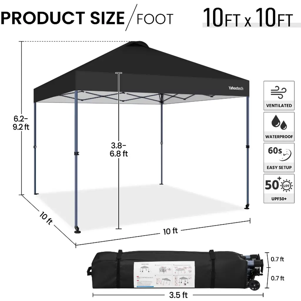Yaheetech 10x10 Pop Up Canopy With One Push Setup, Black