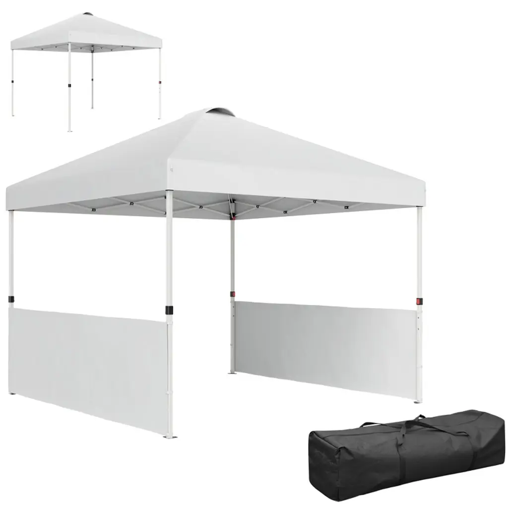 Yaheetech 10x10ft Pop-up Canopy With One-push-to-lock Setup Mechanism And Sidewallwith Pockets, White