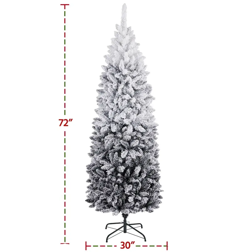 Yaheetech Pre-Lit Flocked Pencil Artificial Christmas Tree - 6 Foot