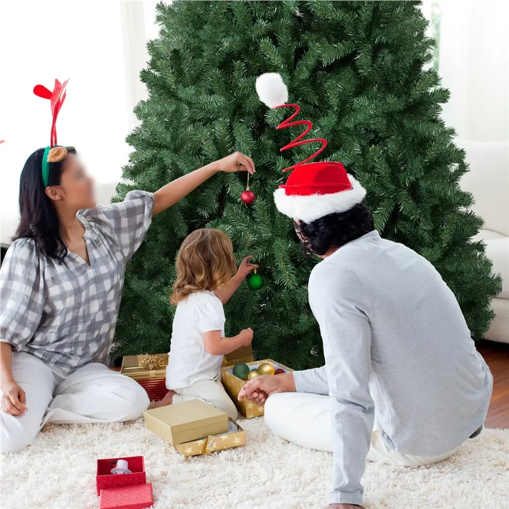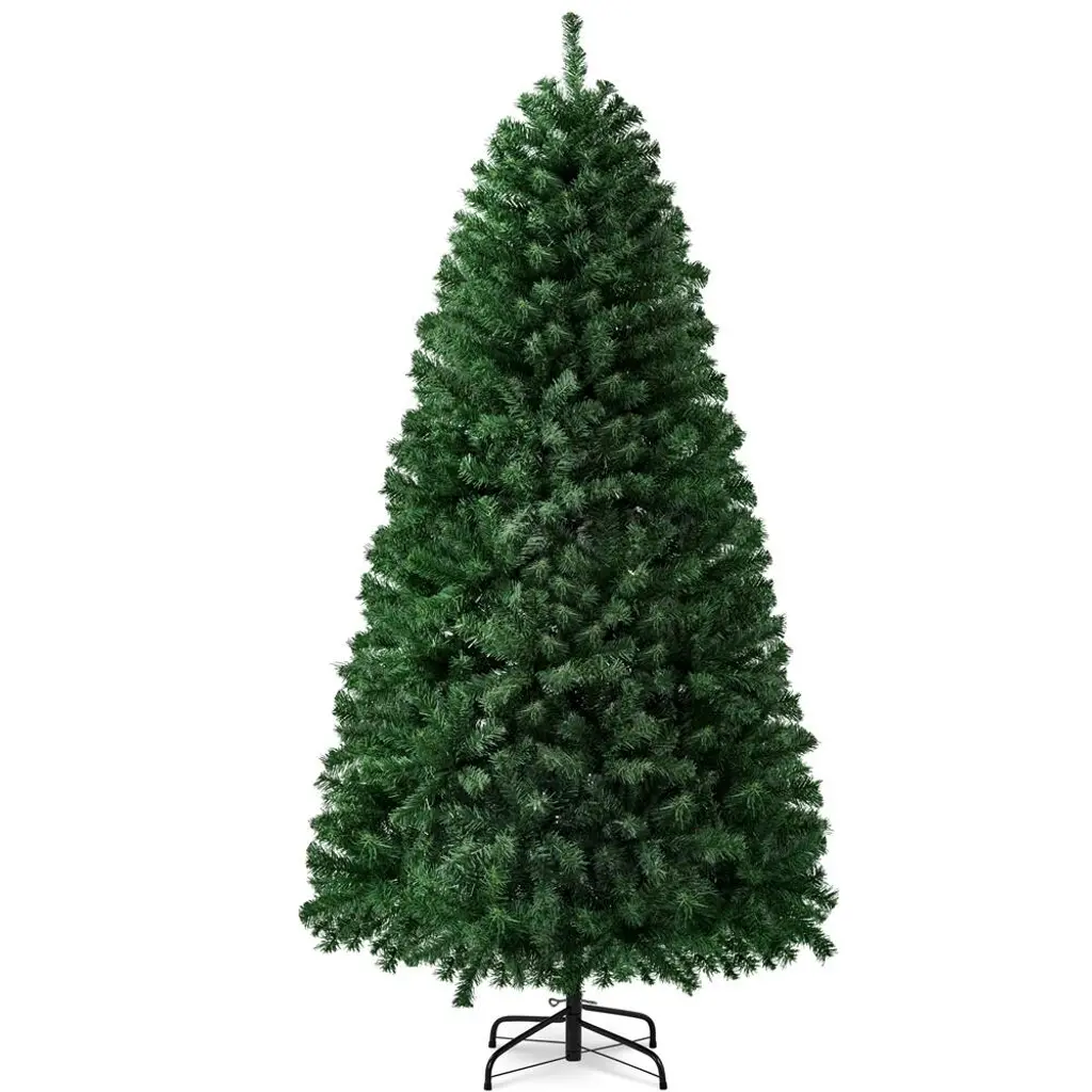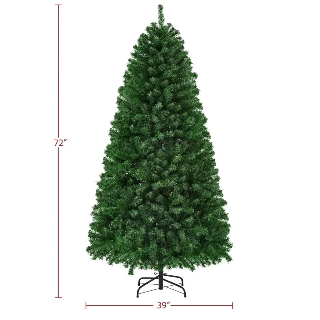 A natural lifelike appearance present you with a full and fluffy look; Premium quality materials ensure this artificial tree durable and sturdy; All branches will automatically fall into their designated places according to a hinged system; Bendable branch tips are easy to lift up and down for pre-setting; Foldable stand is easy to keep and carry. Versatile design allow the whole family to enjoy fum time decorating at their will. This tree is easy to assemble with a foldable stand and three other sections of tree body. PVC needles and metal frame gives you a very traditional feel both to the touch. Features: 1. Natural lifelike appearance: This artificial Christmas tree is hinged with plentiful tips, which give a full and fluffy look from any angle in your decorated places. 2. Premium quality material: Get into the holiday joy with this lush man-made tree. All branches and tips are made of premium PVC, which makes them harmless and durable. Both trunk and the stand are made of iron, ensuring sturdy and balanced placing, not to mention other feathers such as fire-resistant and anti-collapse. 3. Automatic shaping: This artificial Christmas tree is built in hinged system, all branches will automatically fall into their designated places to form a traditional Christmas tree's overall shape after you put three tree bodies together. 4. Foldable stand: This stand is foldable for easy storage and packing, you can effortlessly fold it to save more space in garage and wait for another coming year. 5. Versatile design: Our green spruce artificial tree can be used either indoor or outdoor, the sturdy metal frame is relatively heavier and not likely to collapse. It is an unlit tree with no decoration on it except for branches and tips. 6. Flexible tips: The "leaves" on our tree can be bent and set at will. After putting the tree body and the stand together, you are supposed to fluff out the tips to give a full look of your unique Christmas tree. 7. Easy to set up: Our tree is made based on hinged system, the tree body is divided into 3 sections with label on them. You could set up this tree by simply insert tree part on another. The stand can also be effortlessly folded out and connect to tree body with screws. 8. Lightweight but sturdy: This artificial Christmas tree features a lightweight design, which is convenient to move around as needed. Comes with a metal stand, your tree will stay stable when hanging beautiful ornaments, lights, garland, etc.