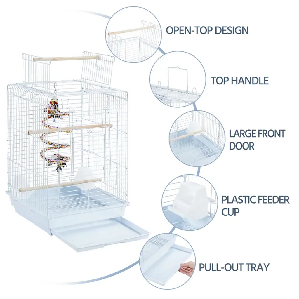 Yaheetech Travel Bird Cage With Open Play Top For Budgie, Finch, Green Cheek Canary, Parakeet Cockatiel, White