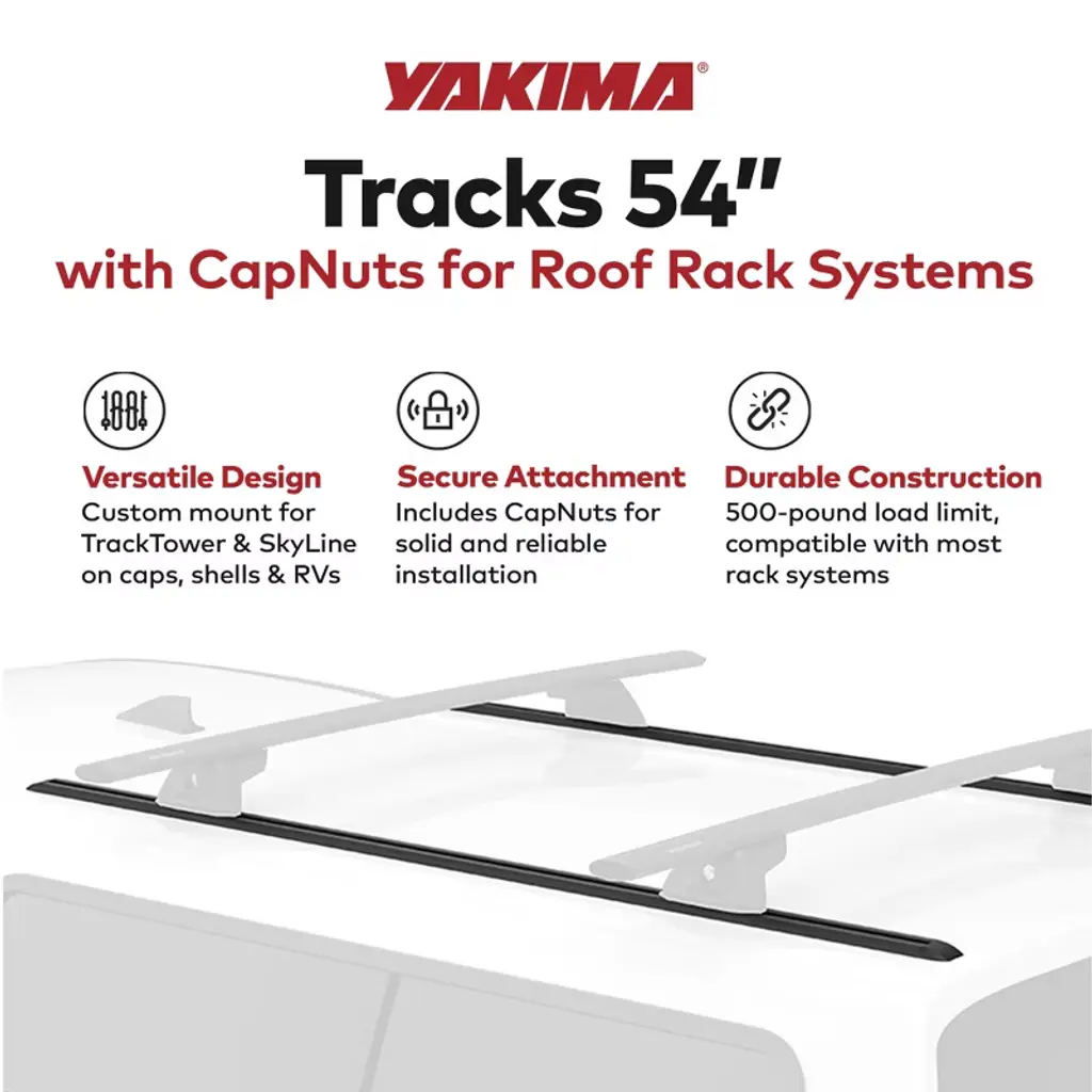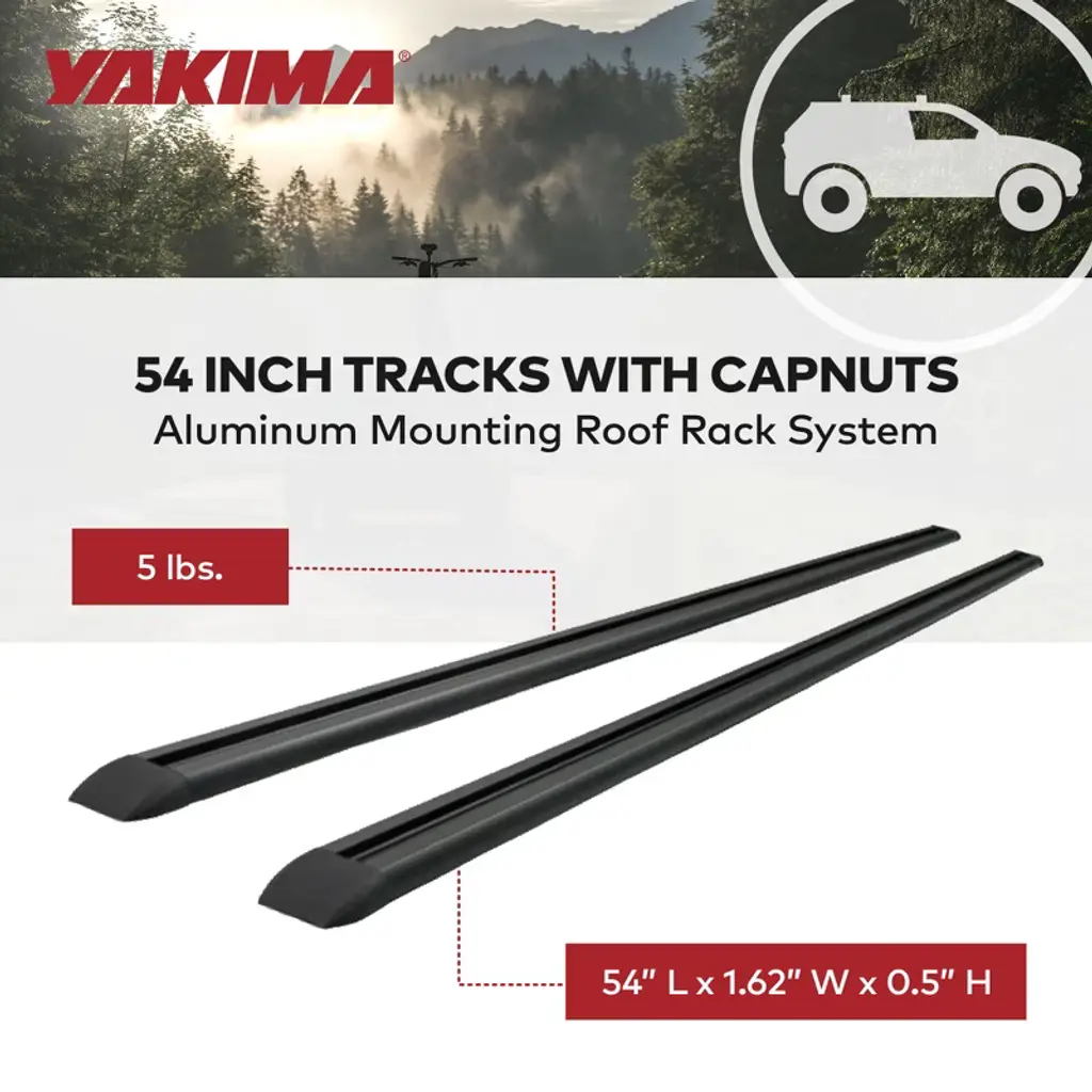Yakima 54 Inch Smooth Roof Mount Tracks With Capnuts And Adjustable Base For Custom Install Roof Rack Systems, Black, Set Of 2