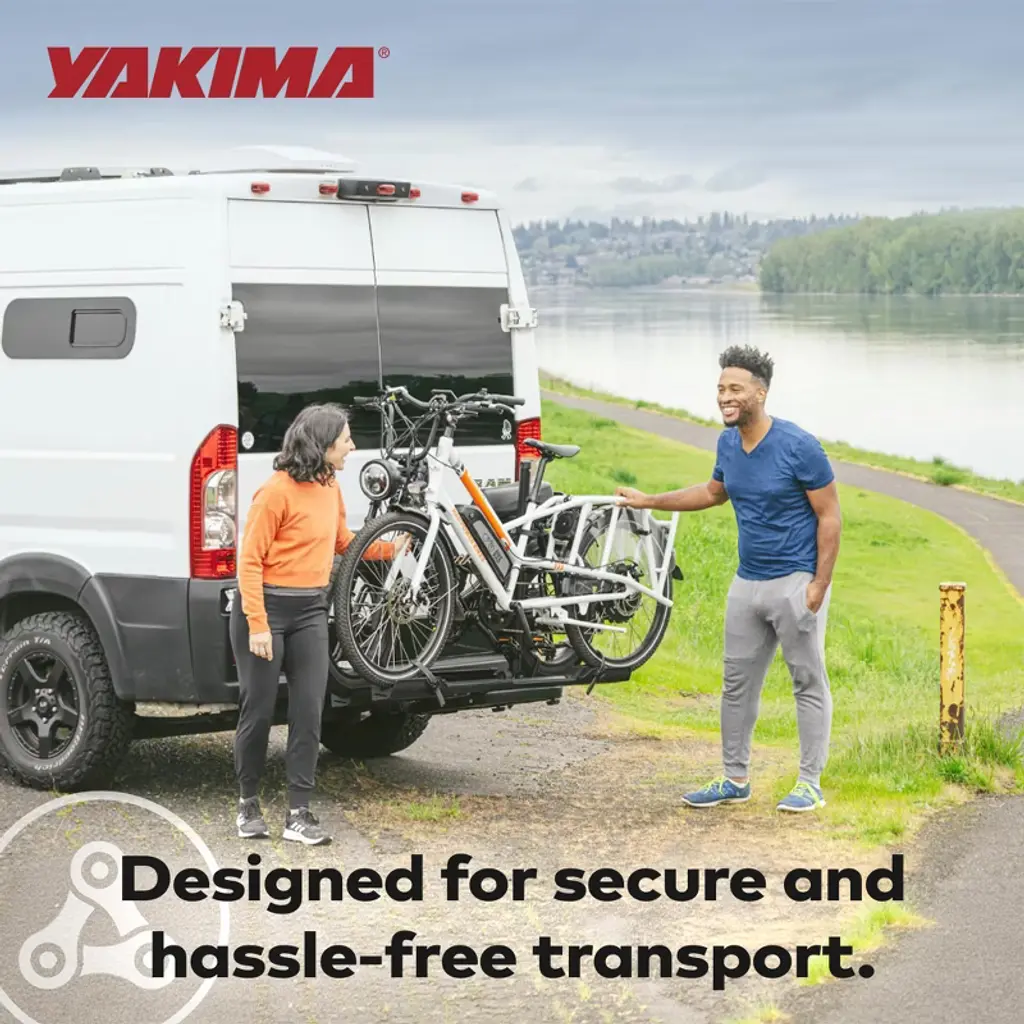 Load and go with the Yakima OnRamp LX Hitch Bike Rack. Engineered for versatility and strength, this carrier simplifies the transport of electric or mountain bikes, accommodating a range from small kid's bikes to hefty cargo bikes with ease. The integrated ramp allows for straightforward roll-on loading, eliminating the strain of lifting heavy bikes. Its adjustable trays and dual wheel straps ensure bikes are securely mounted, reducing interference and providing a stable ride. Transform your vehicle into a mobile bike hub. Ideal for SUVs, trucks, and cars, this hitch-mounted rack makes use of your vehicle’s receiver to offer a robust hold for your bicycles. Whether it’s a road bike or a rugged mountain bike, this rack's platform design ensures your bikes travel safely and accessibly. The rack’s telescoping design fits various wheelbases and the tiered configuration minimizes contact between bikes. Ready for any journey, the Yakima OnRamp Hitch Bike Rack is built with premium features to enhance your biking experience. Beyond its practical load-bearing capabilities, it includes a HitchLock with SKS for added security and a foldable structure for when the bikes are off and you're on the move. Compatible with a variety of hitch receivers, this rack is equipped with a built-in bottle opener to celebrate the day's ride. Its durable design supports off-road use, making it an indispensable accessory for your outdoor adventures.