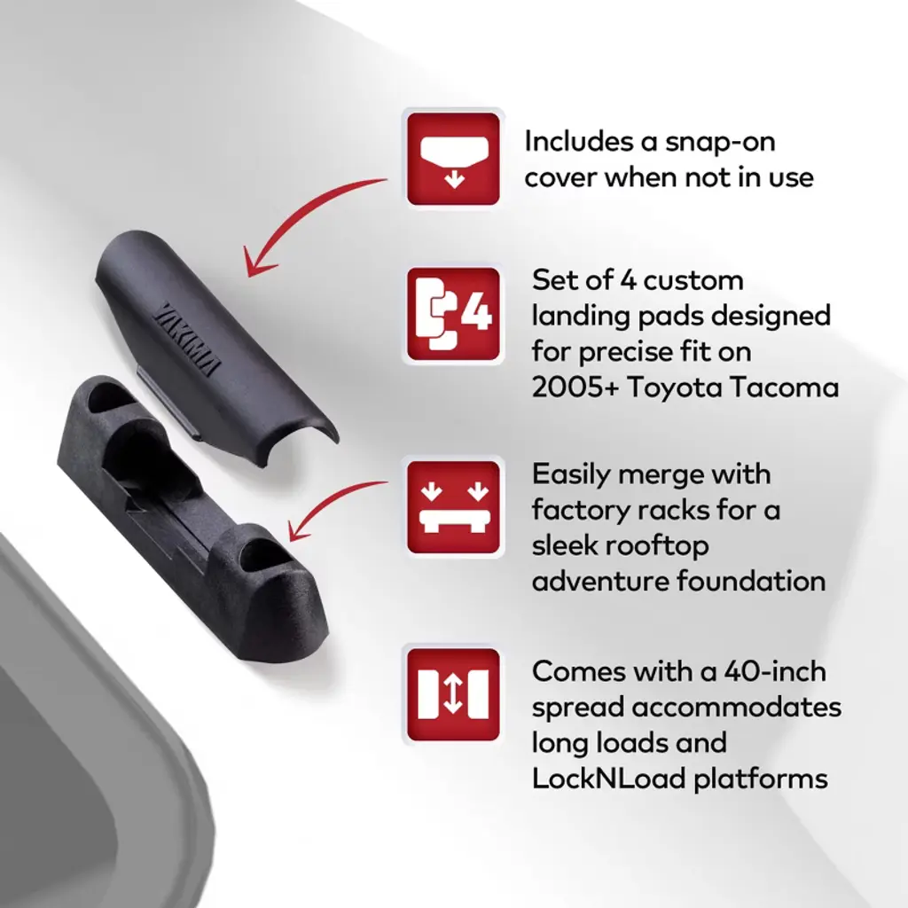 Yakima Landing Pad Fixed Point Tower Installation With 40 Inch Crossbar For Naked Rooftops Compatible With 2005 And Later Toyota Tacoma, Set Of 4