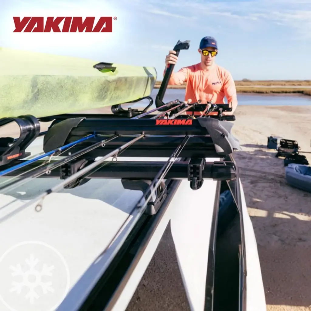 Simple and compact, the YAKIMA ReelDeal Rooftop Fishing Rod Mount, a top-tier fishing accessory for your outdoor escapades. This versatile rod holder can securely hold your fishing rod, skis, and snowboards, making it a perfect gear accessory for those who love the great outdoors. The fishing rod holder for cars is padded, ensuring your equipment remains unscathed during transportation. It offers an organized solution for your fishing gear and equipment, eliminating the need for additional fishing organizers while traveling. The rooftop rod holder features universal mounting hardware that fits all Yakima crossbars and most other roof racks, adding to its versatility. The rod holder carries up to 8 fully rigged-up fishing rods of just about any style, and can also transport up to 2 snowboards and/or 4 pairs of skis, so you can bring your family and friends along for the adventure! Access your equipment easily using the single-button side access for quick loading and unloading. With 15.5 inches of full-length padding, the car rod holder securely holds and protects fishing reels and rods while on the road and the Integrated SKS (Same Key System) locks provide added security, ensuring your skis or snowboards stay safe during pit stops. Enjoy the tool-free clamp design that makes installation and removal a breeze! Adventure is calling! If you're going fishing on the water or want to get away to the slopes, the YAKIMA ReelDeal Rooftop Fishing Rod Mount can accommodate your needs.