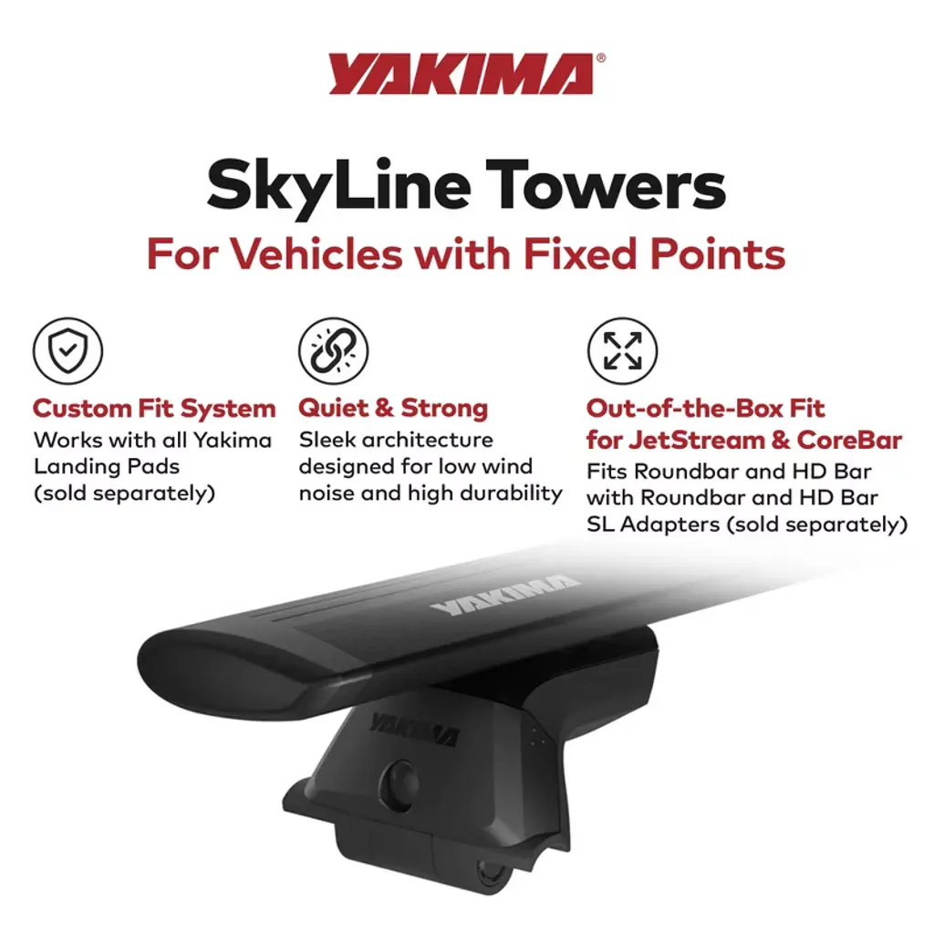 Yakima Skyline Towers Roof Rack Cargo For Vehicles With Fixed Points Or Tracks, With Barbed Feature, Fits All Styles Of Landing Pads (Set Of 4)