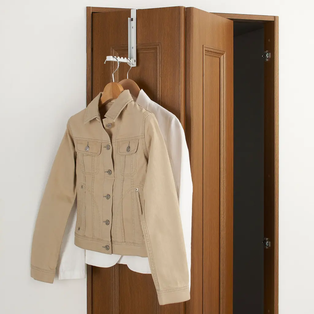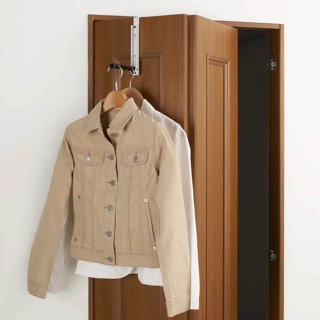 Designed in Japan with small spaces in mind, this collection features clean-lined essentials that are as good-looking as they are functional. This minimalist door hanger closes to fold flat, making it discreet when not in use.