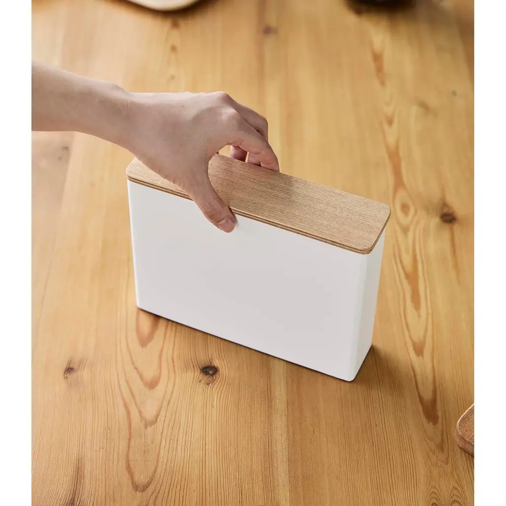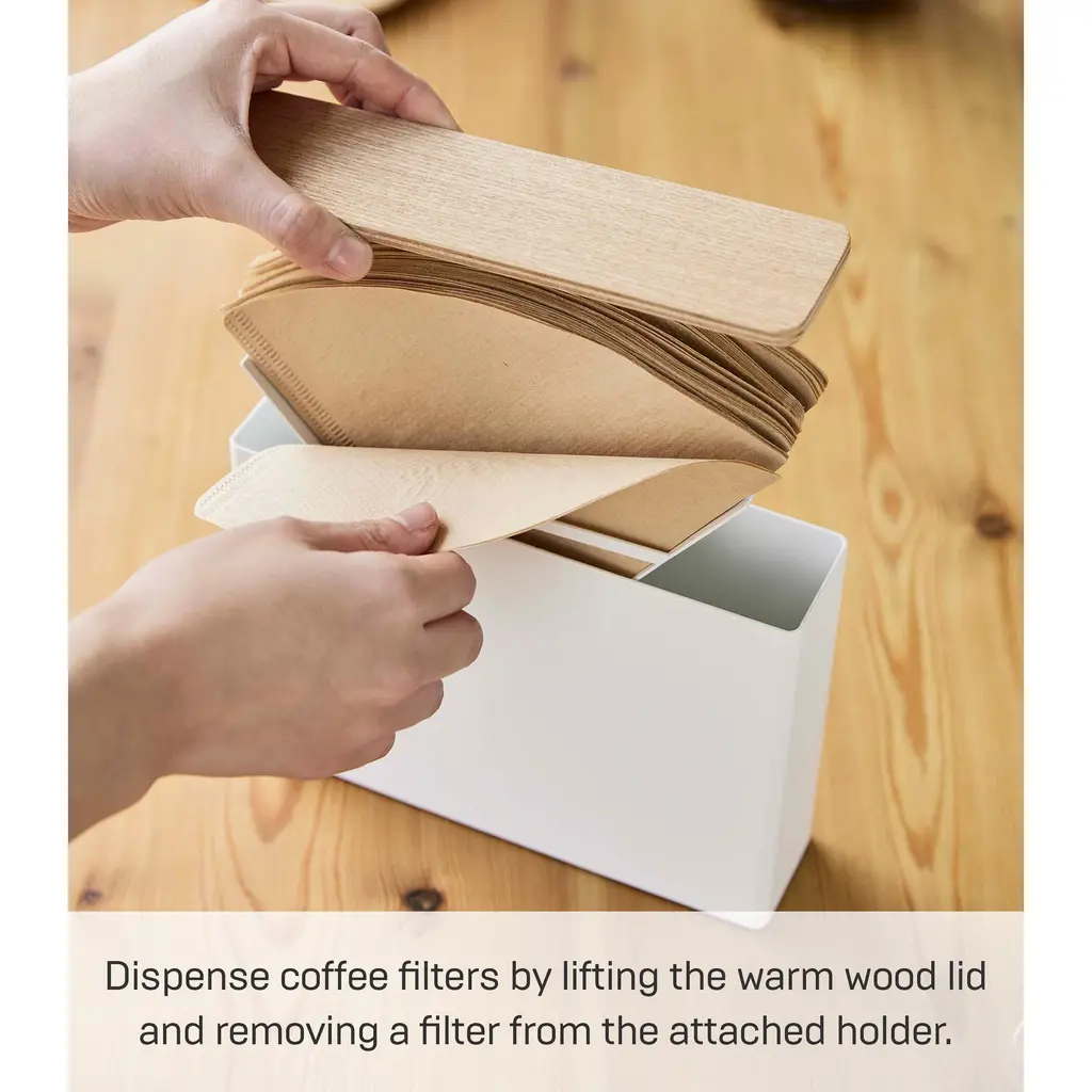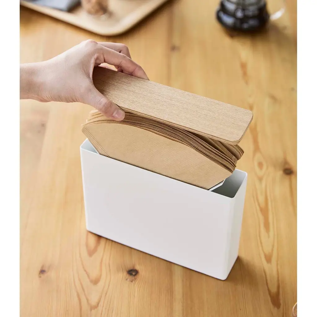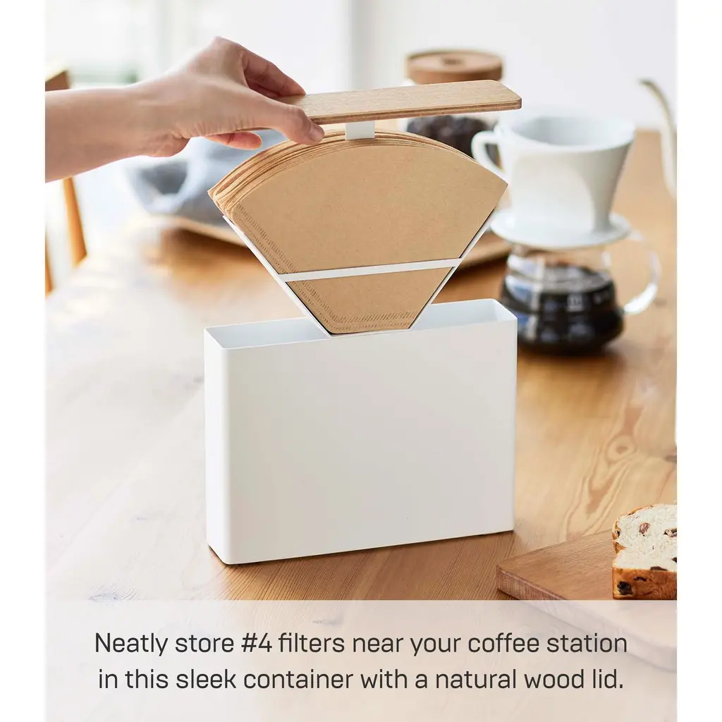Yamazaki Home Coffee Filter Case - Size 04, Steel And Wood, 04 Coffee Filters, Lid - L 2.05 X W 8.27 X H 6.1 Inches - White - L 2.05 X W 8.27 X H 6.1 Inches