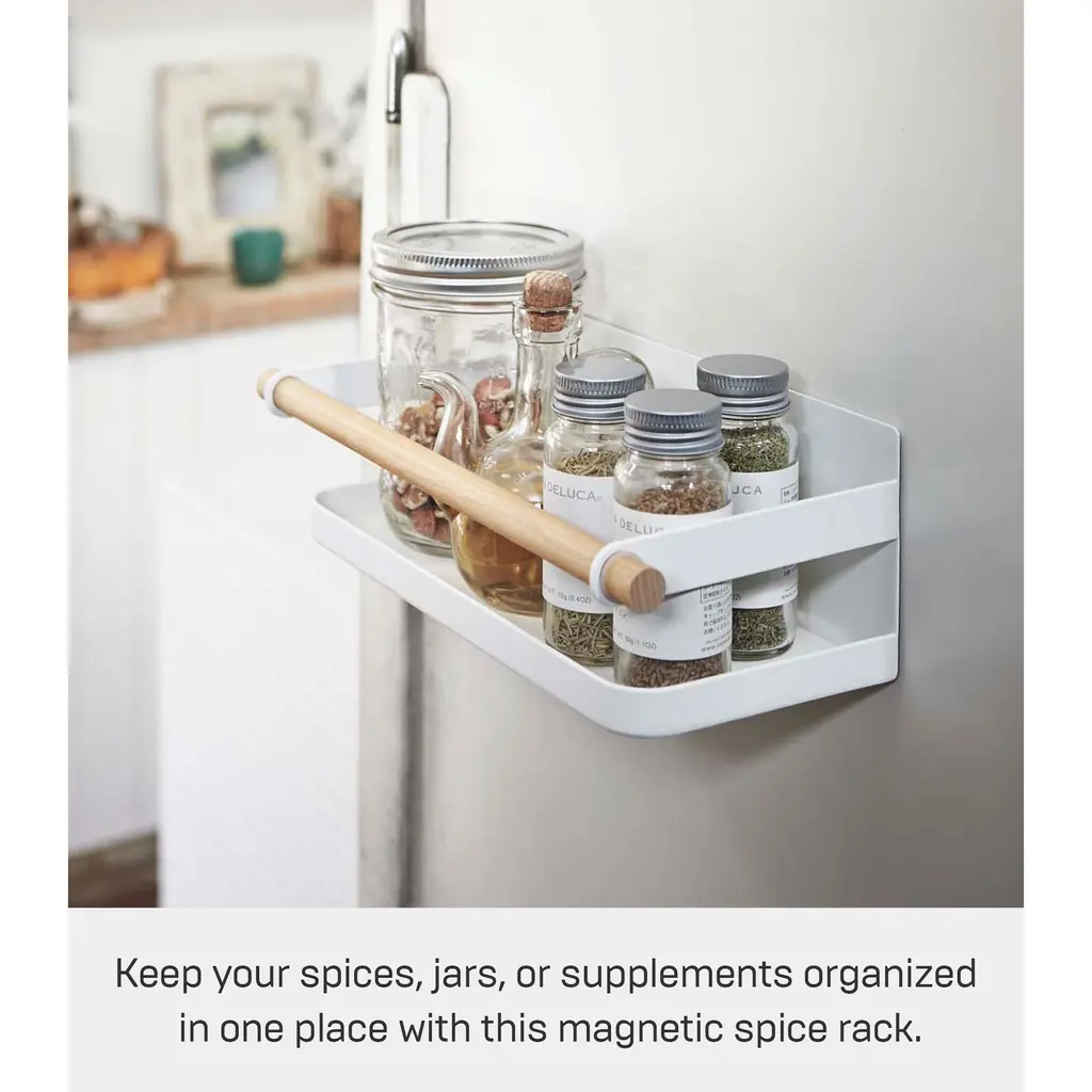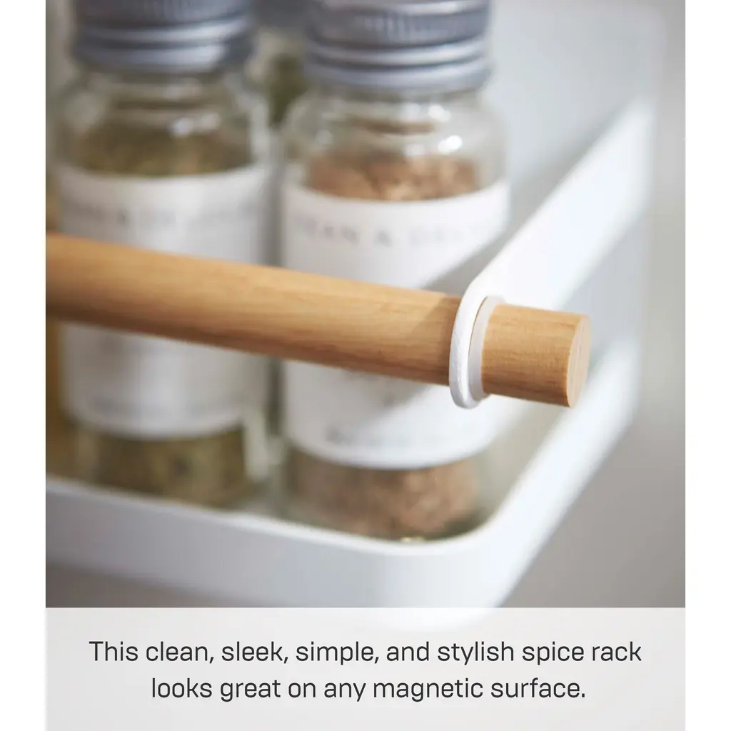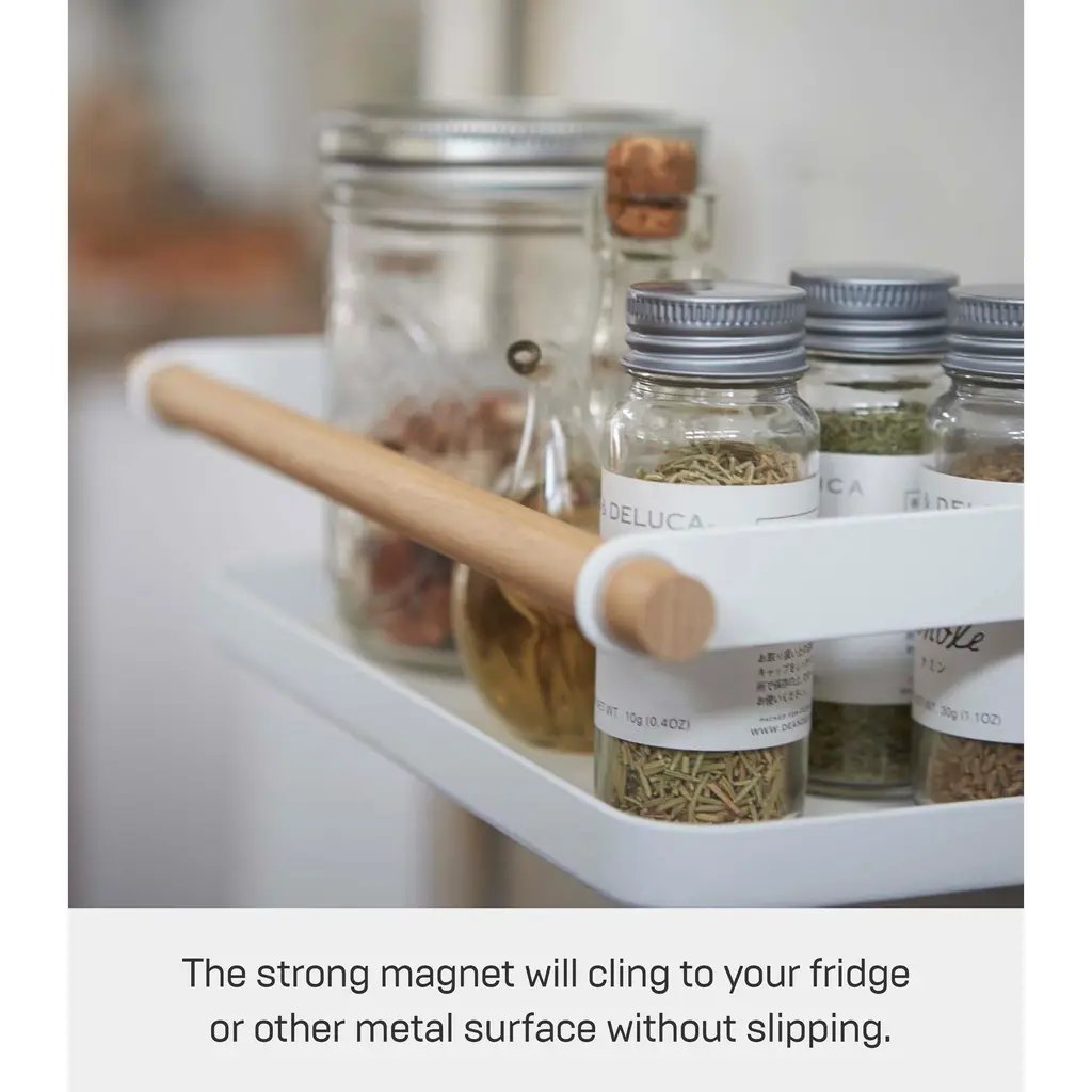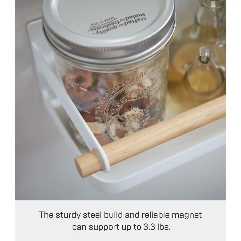 Yamazaki Home Magnetic Storage Caddy, Steel And Wood, Holds 3.3 Lbs - L 5.12 X W 10.83 X H 3.35 Inches - White