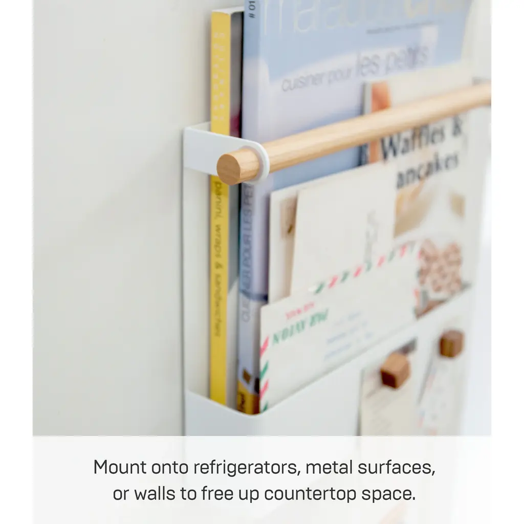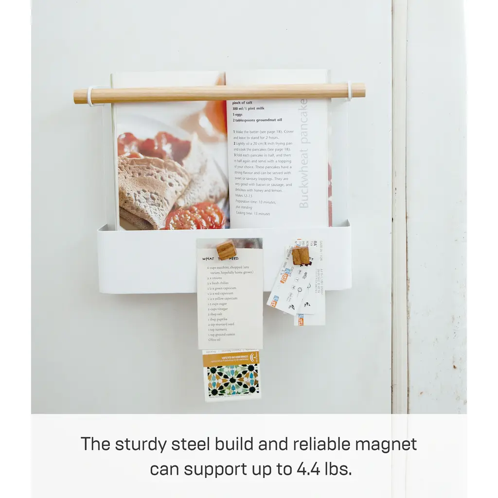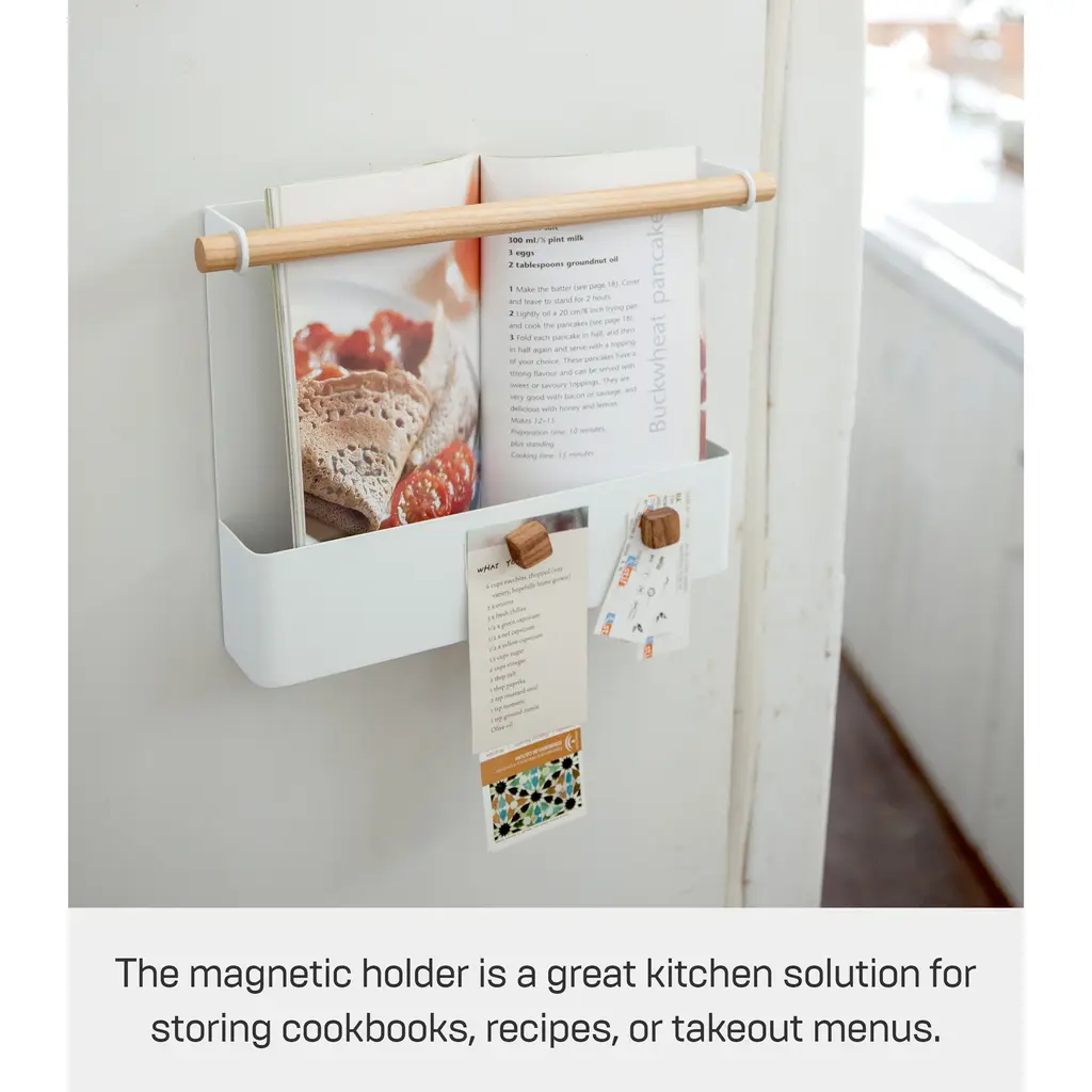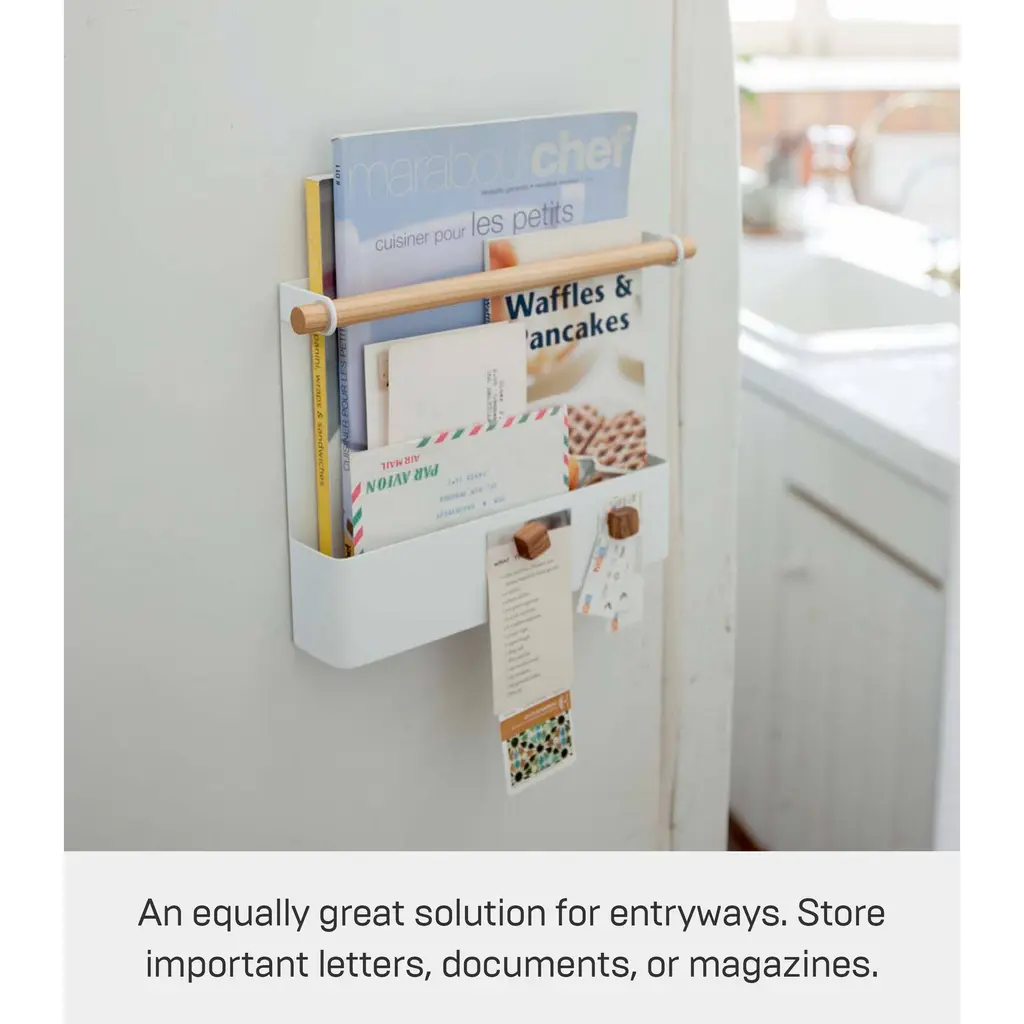 Yamazaki Home Magnetic Storage Pocket, Steel And Wood - L 2.17 X W 10.83 X H 7.87 Inches - White - L 2.17 X W 10.83 X H 7.87 Inches