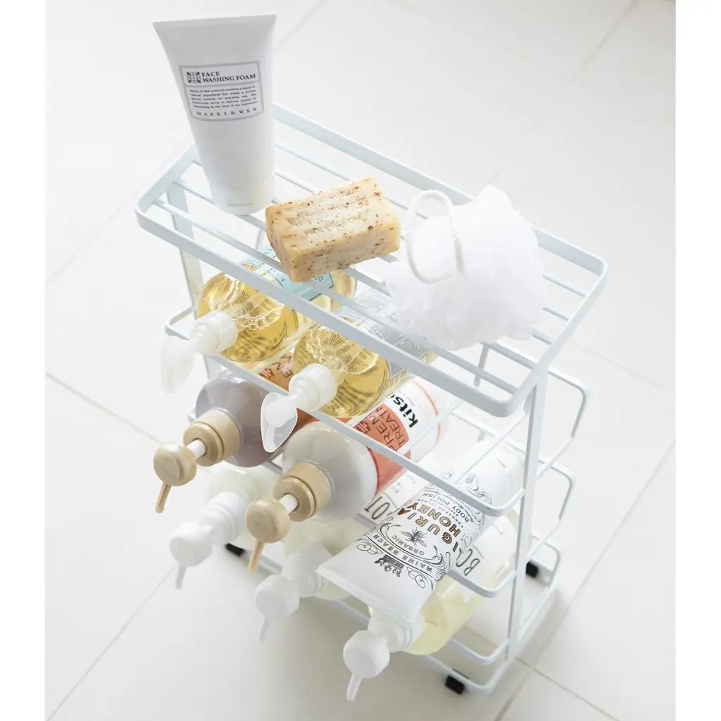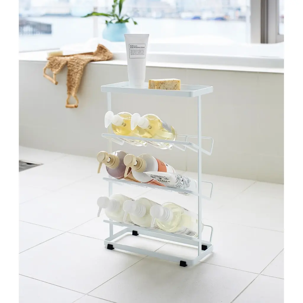 Yamazaki Home Shower Caddy - Three Sizes, Steel, Medium, Holds Up To 9 Dispensers, Holds 26.4 Lbs - White