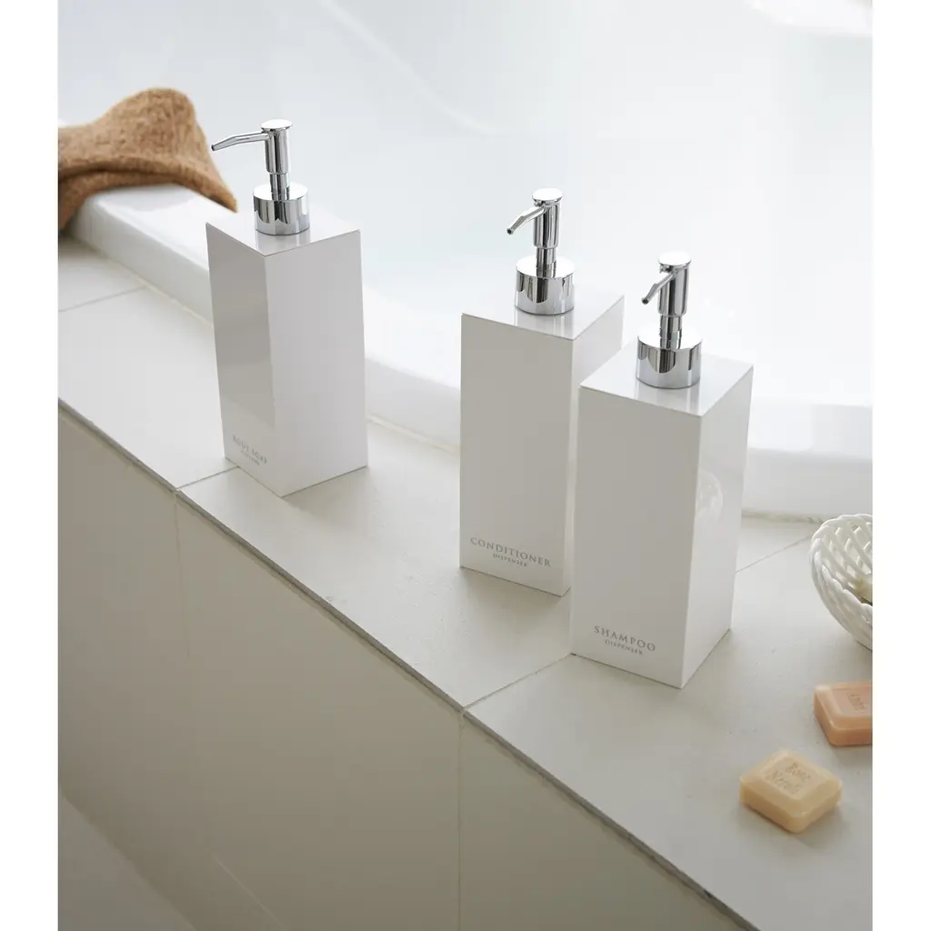 Yamazaki Home Square Shower Dispenser - Three Styles, Abs Plastic, Body Soap - L 2.76 X W 2.76 X H 9.06 Inches - White