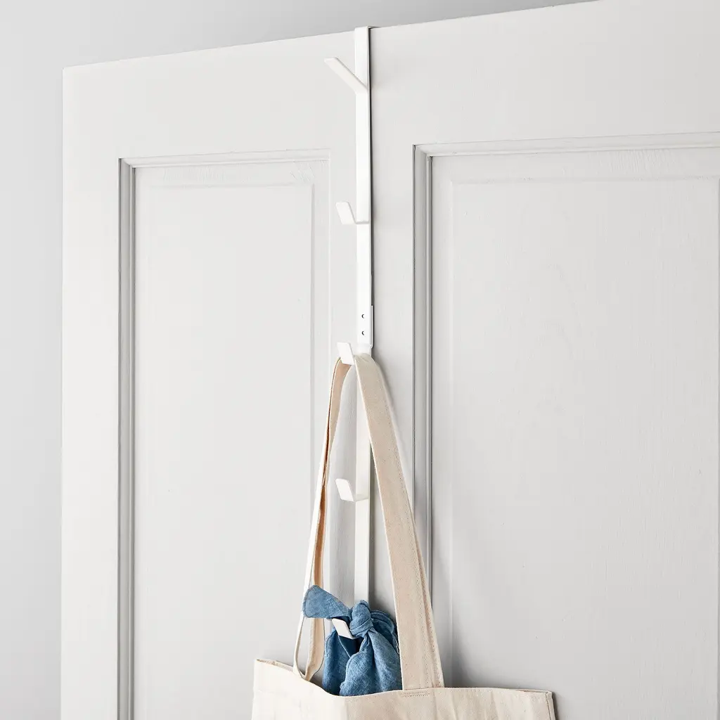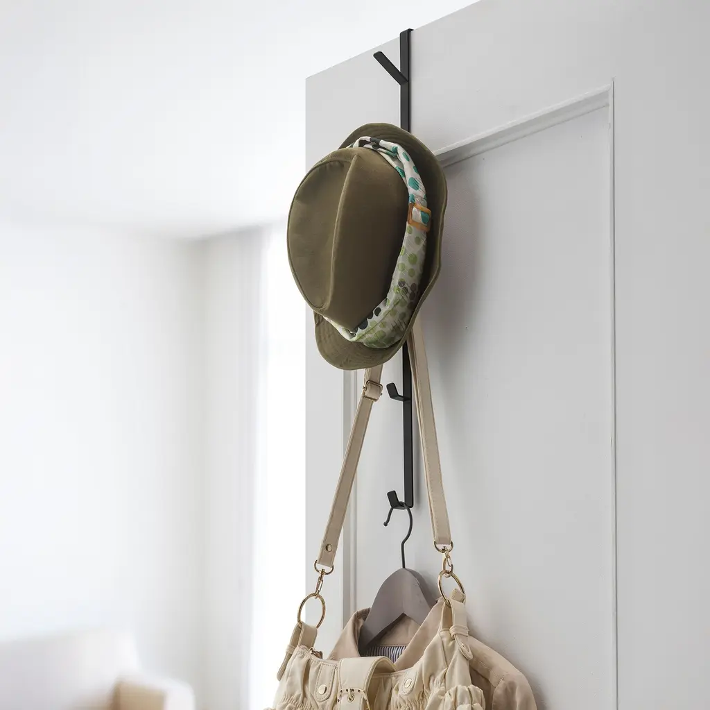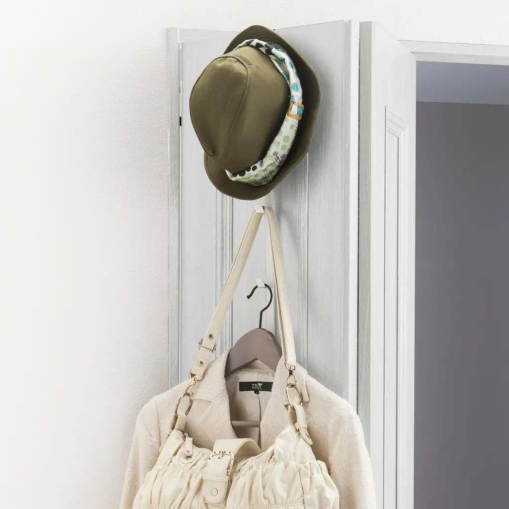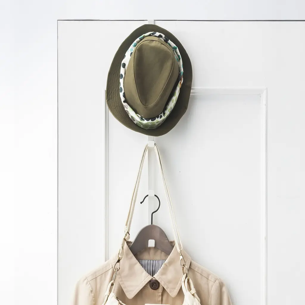 Designed in Japan with small spaces in mind, this collection features clean-lined essentials that are as good looking as they are functional. This hook fits over door tops, providing instant hanging spots in otherwise wasted space.