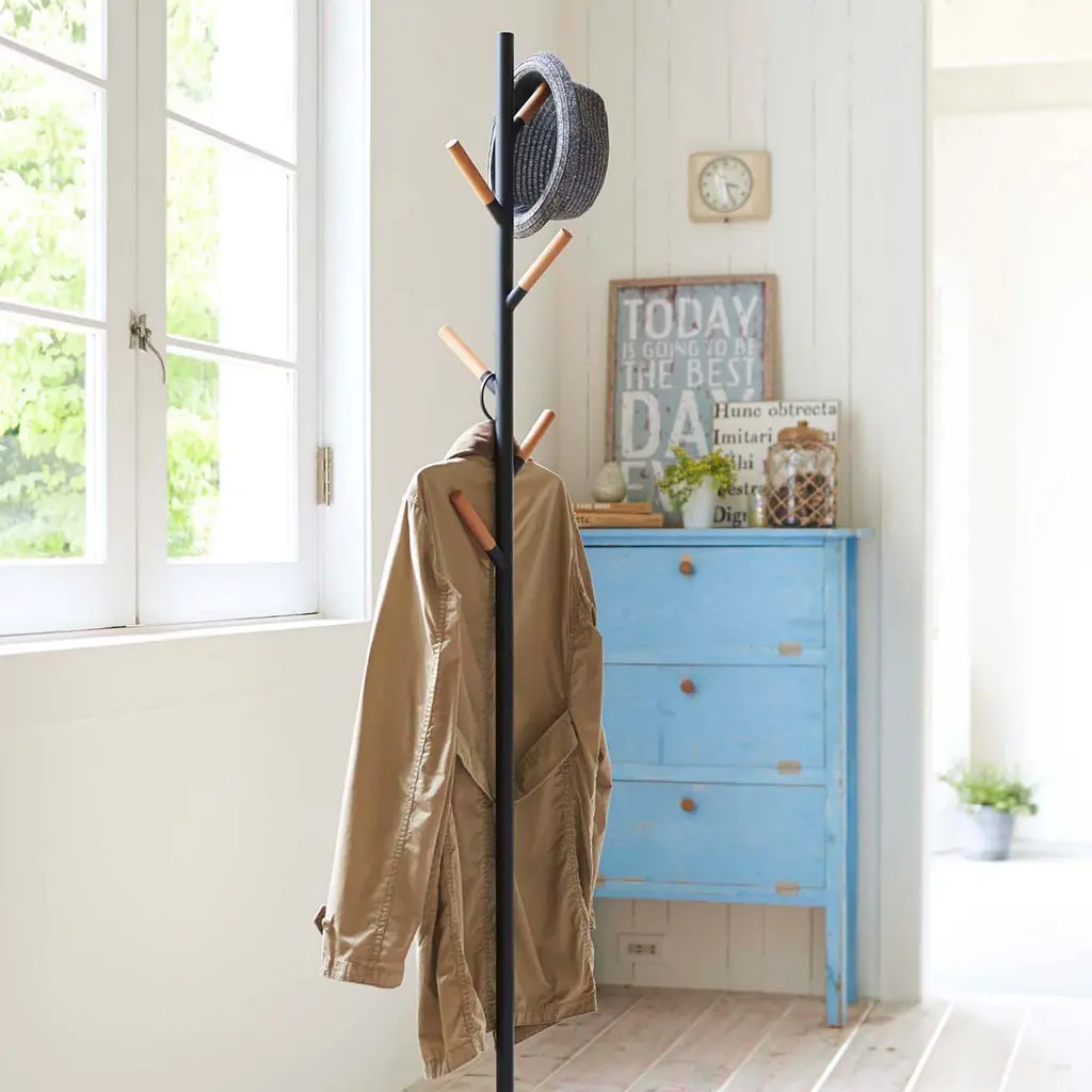 Designed in Japan with small spaces in mind, this collection features clean-lined essentials that are as good-looking as they are functional. A small footprint meets modern convenience in this coat hanger that can hold up to six jackets, purses and more.