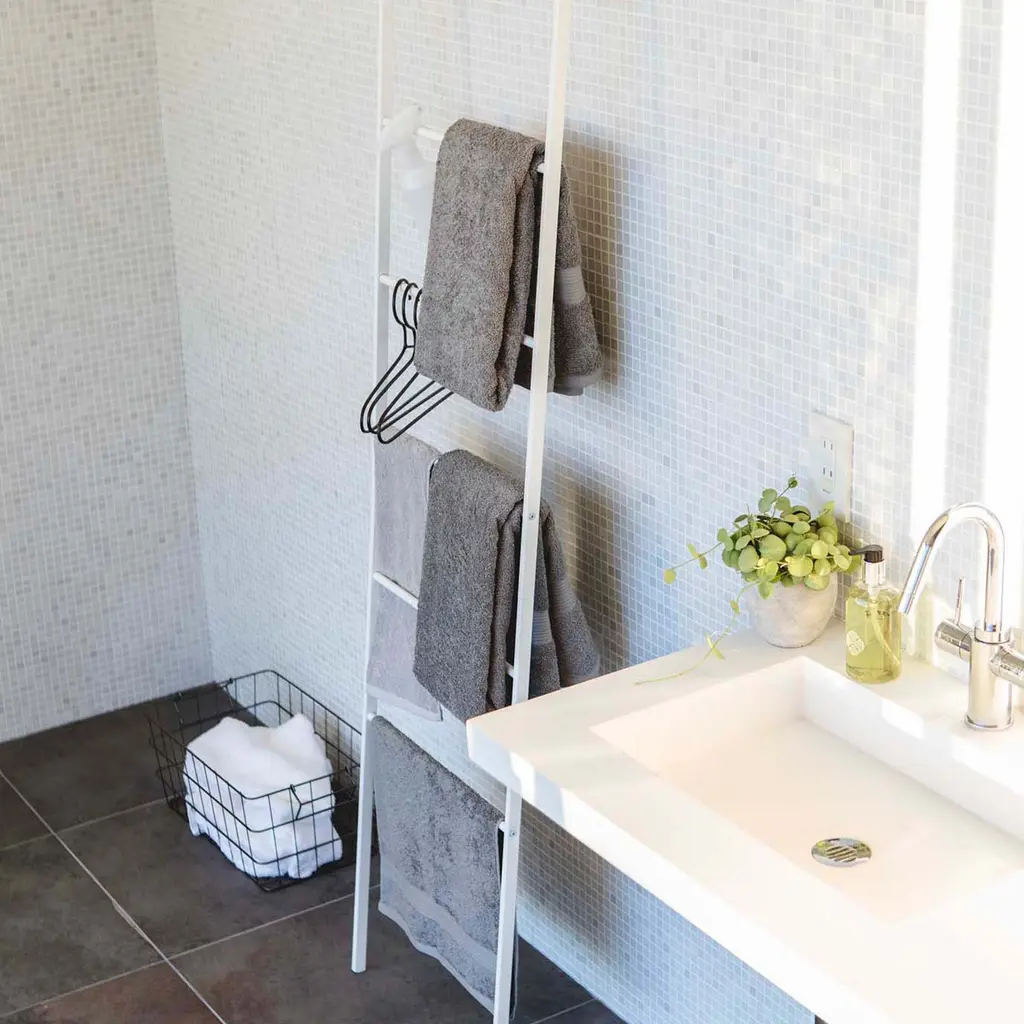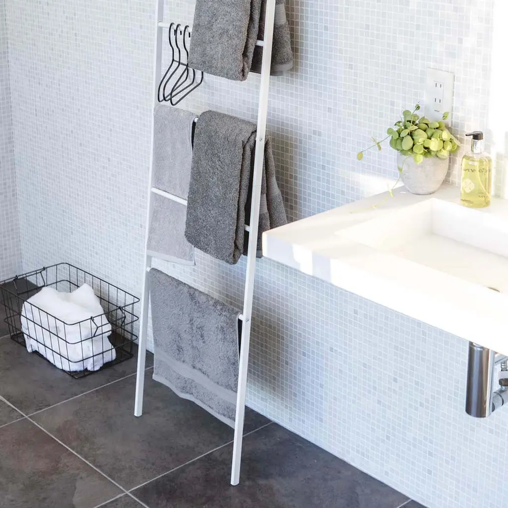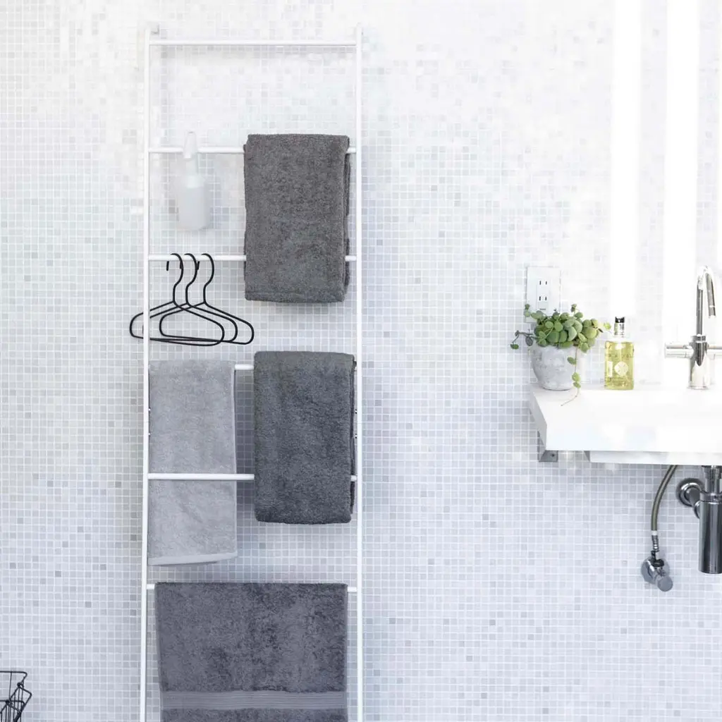 Designed in Japan with small spaces in mind, this collection features clean-lined essentials that are as good looking as they are functional. Hang bathroom towels, clothes and accessories to dry on this slim ladder hanger.