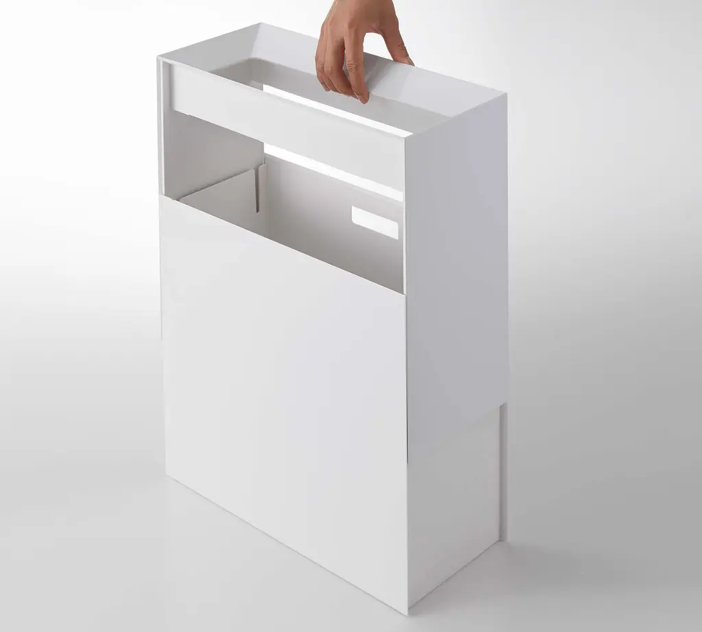 Designed in Japan, Yamazaki creates beautiful, functional products with a focus on sleek solutions. This trash can features a narrow design that nestles into tight spaces, and the clever interlocking design helps keep trash and liners out of view.
