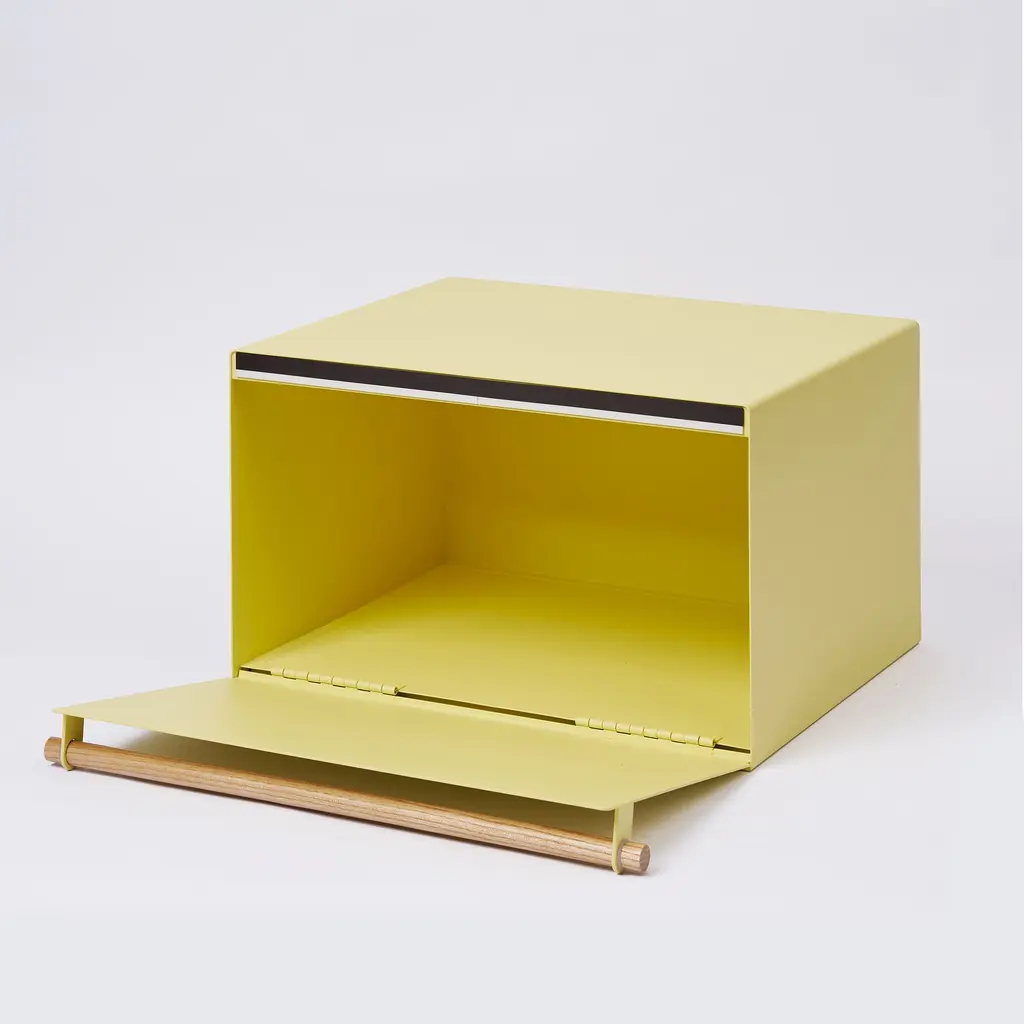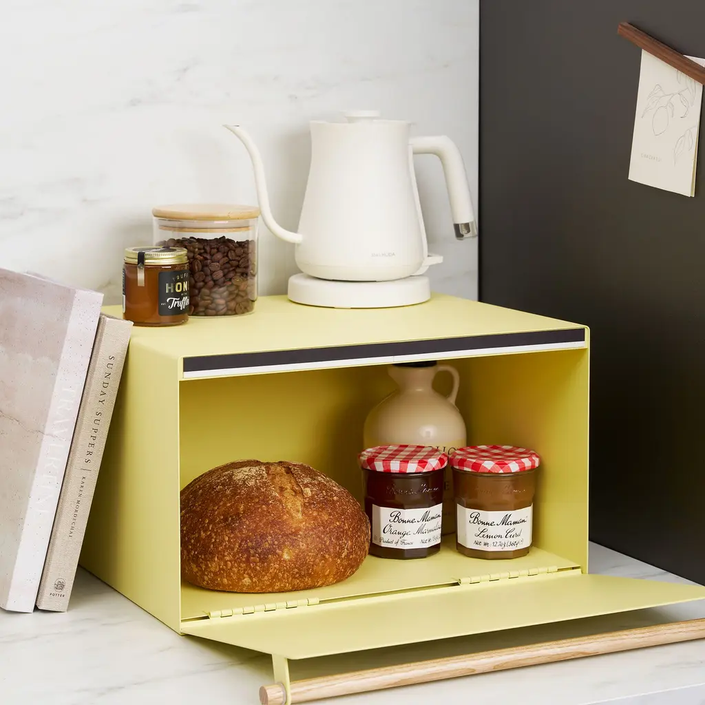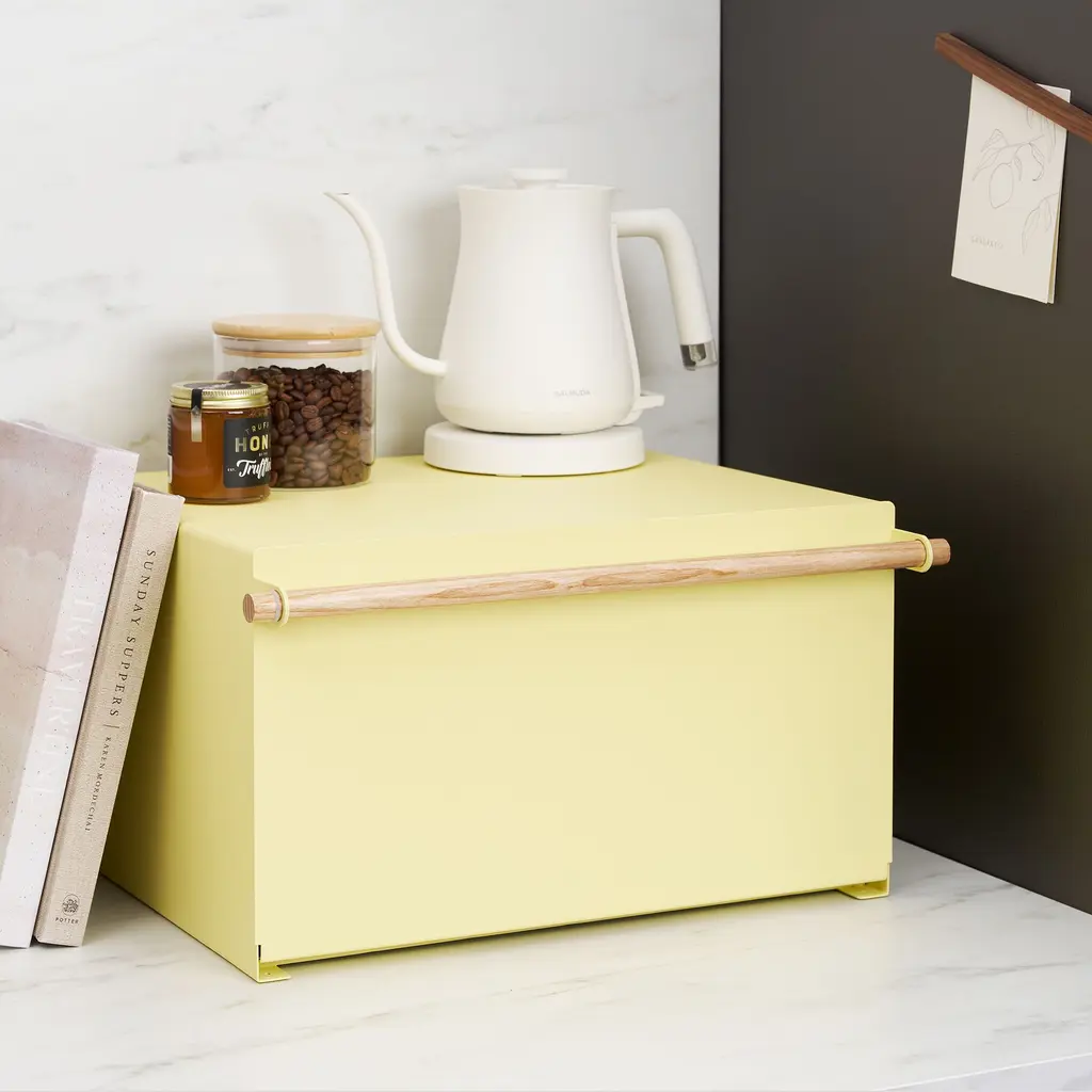Designed in Japan with small spaces in mind. Modern looking and functional. Keep your bread fresh and counter clean. Its flat top can easily store things atop it.