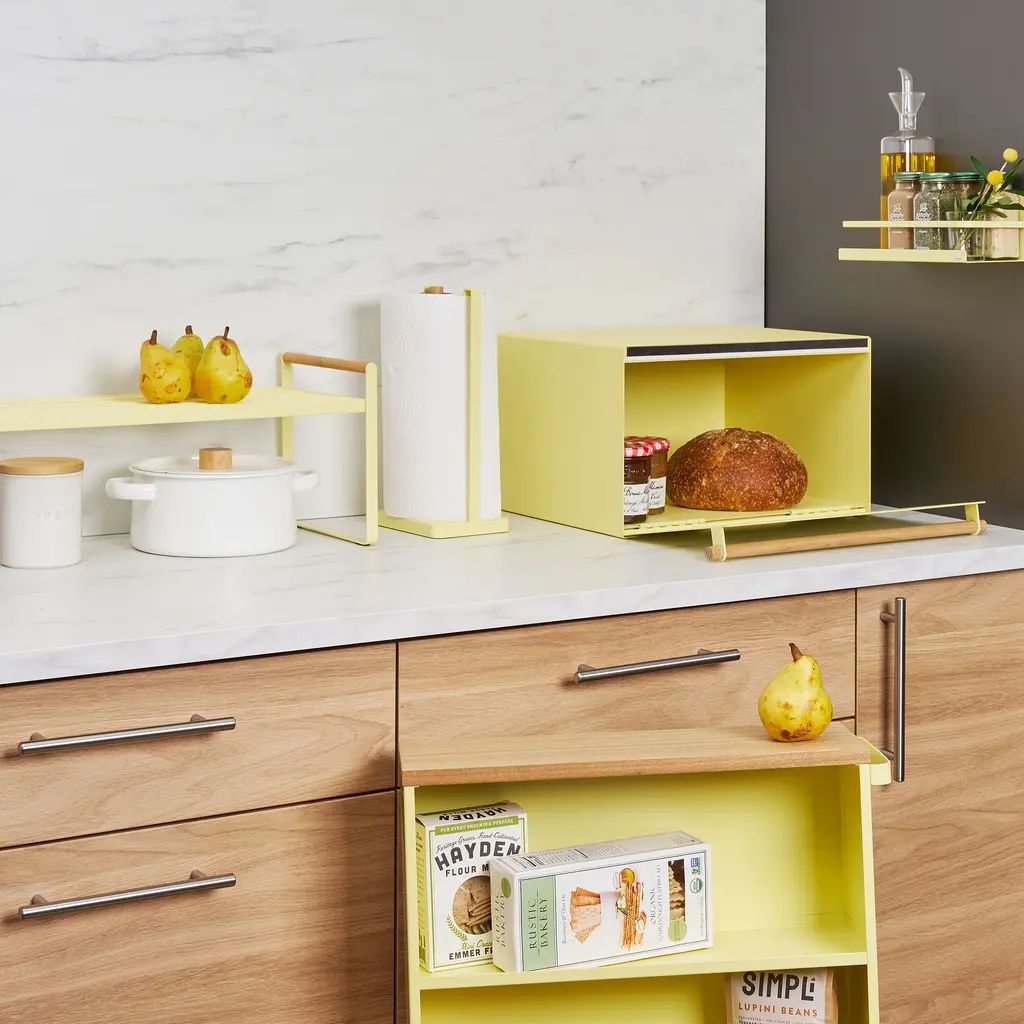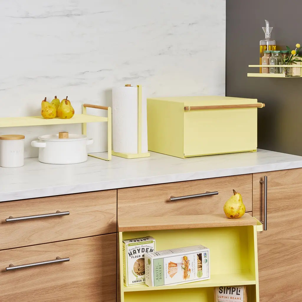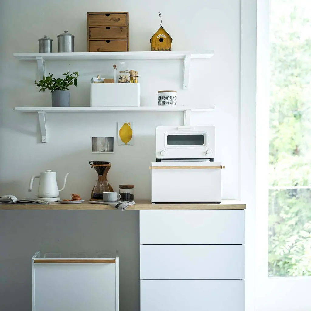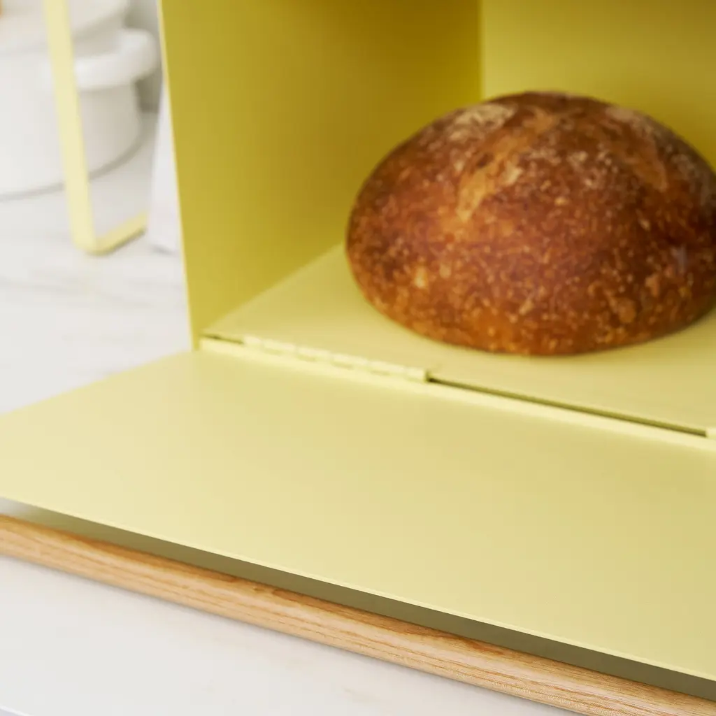Designed in Japan with small spaces in mind. Modern looking and functional. Keep your bread fresh and counter clean. Its flat top can easily store things atop it.