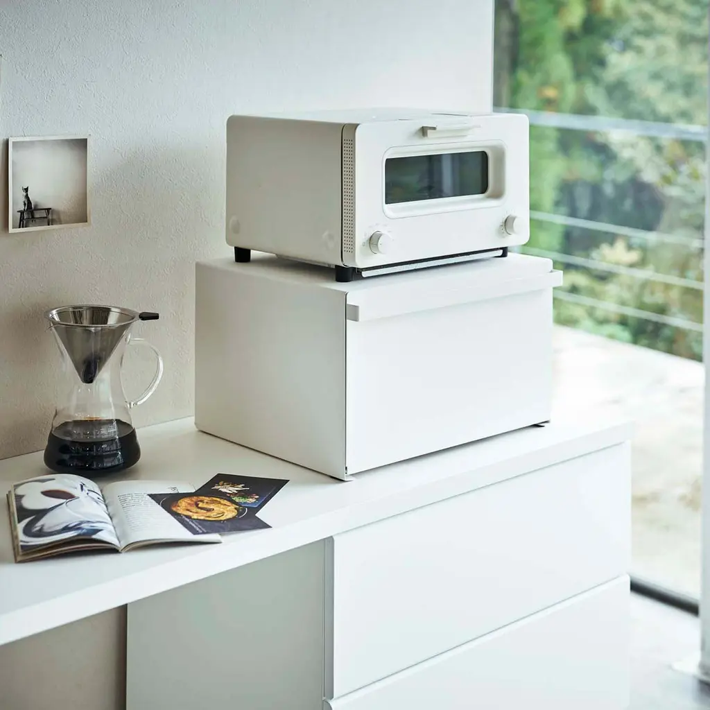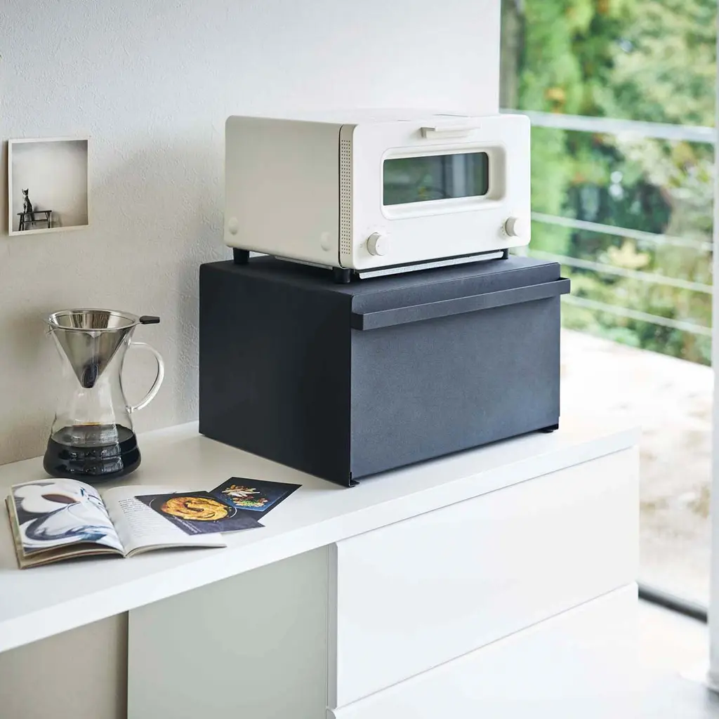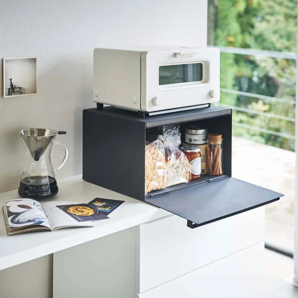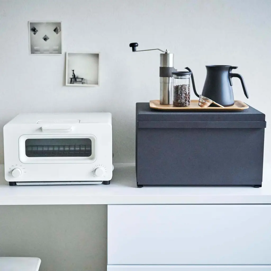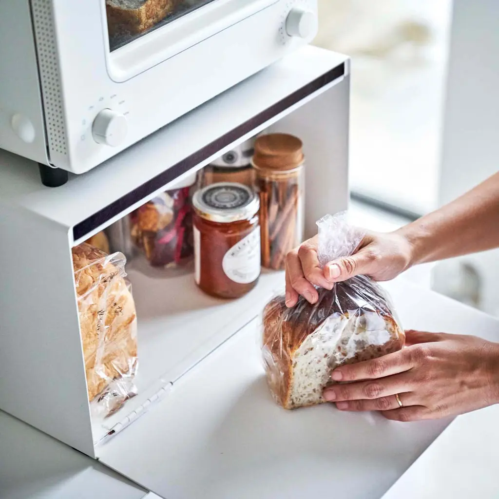 Designed in Japan with small spaces in mind. Modern looking and functional. Keep your bread fresh and counter clean. Its flat top is also great for storing things atop it.