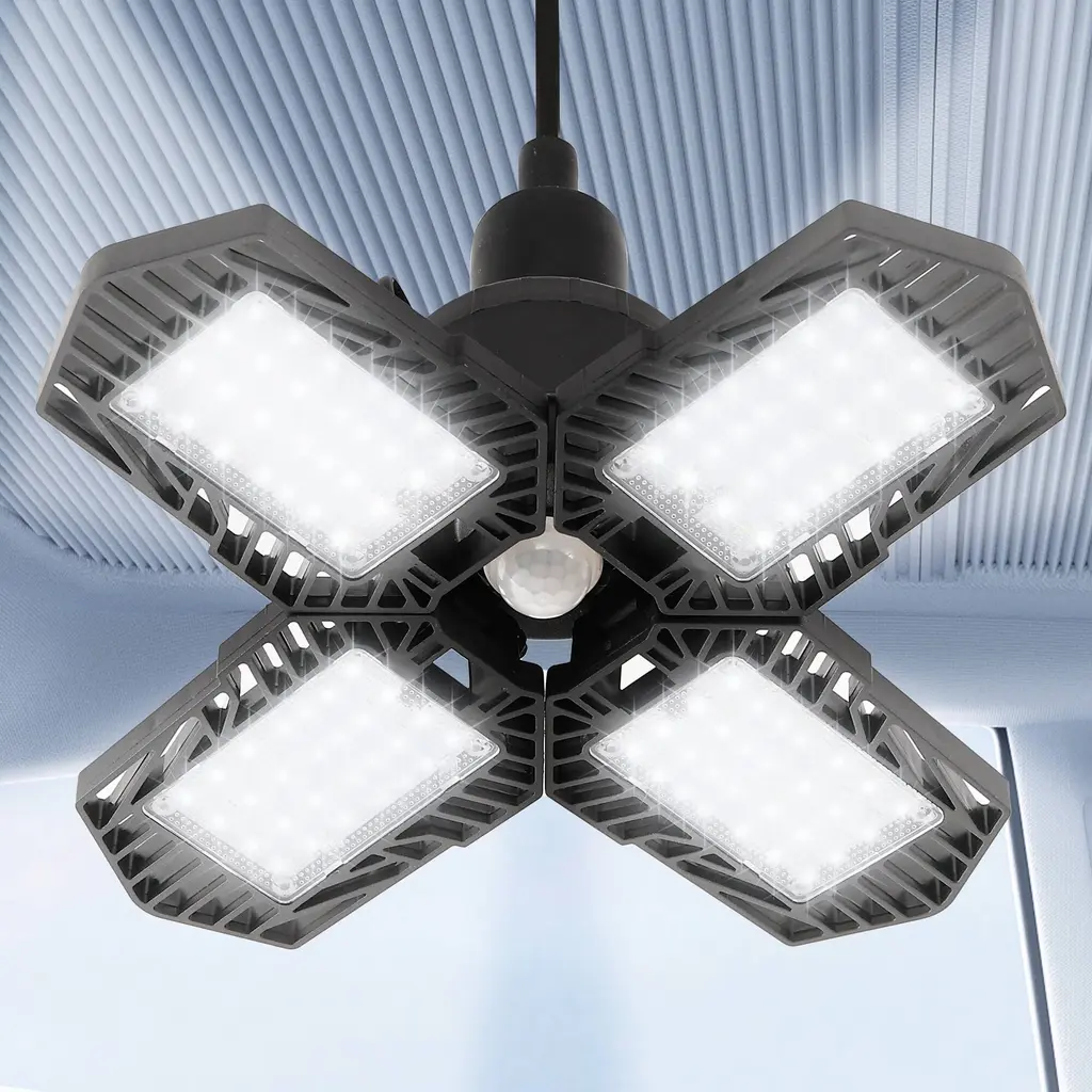 Upgrade your garage lighting with this efficient 4-blade light that features a motion sensor for added convenience. Offering a 6500K daylight color temperature, it provides clear, bright illumination for all your tasks. The sleek black design adds a modern touch, while the motion sensor ensures hands-free operation, automatically turning on the light when it detects movement.