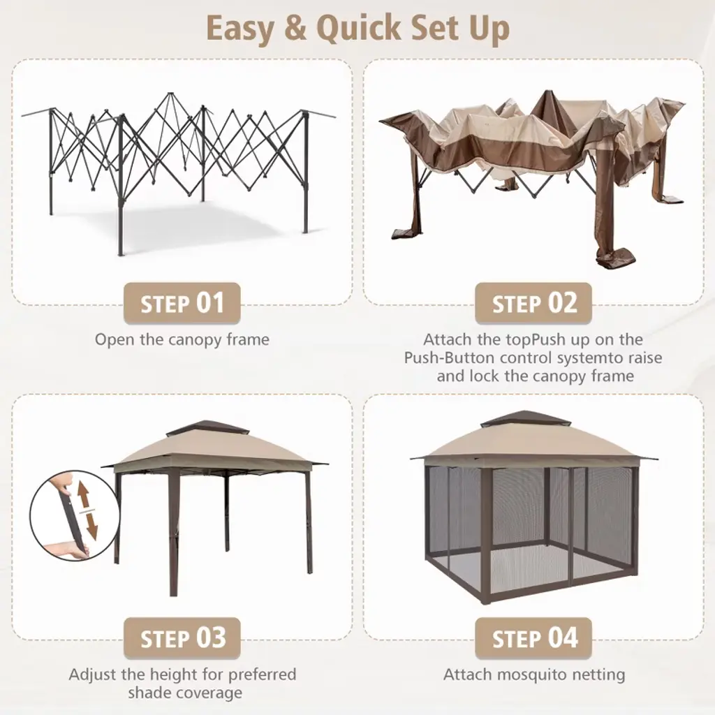 Yardsight 11x11 Pop Up Gazebo Tent With Mosquito Netting – Quick Set Up, Water-resistant Outdoor Canopy For Patio, Garden, Backyard