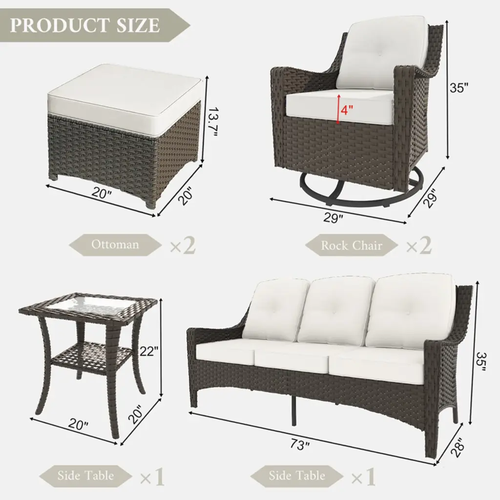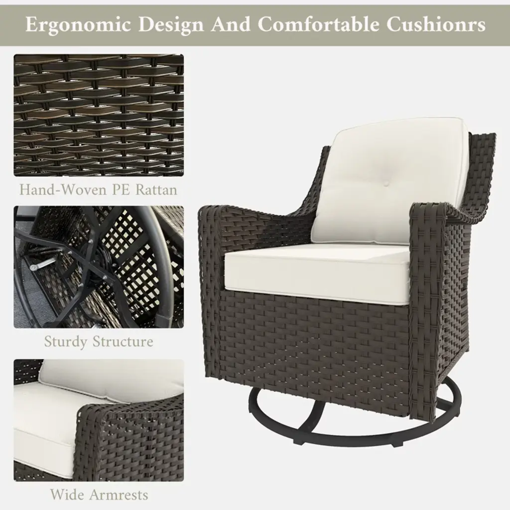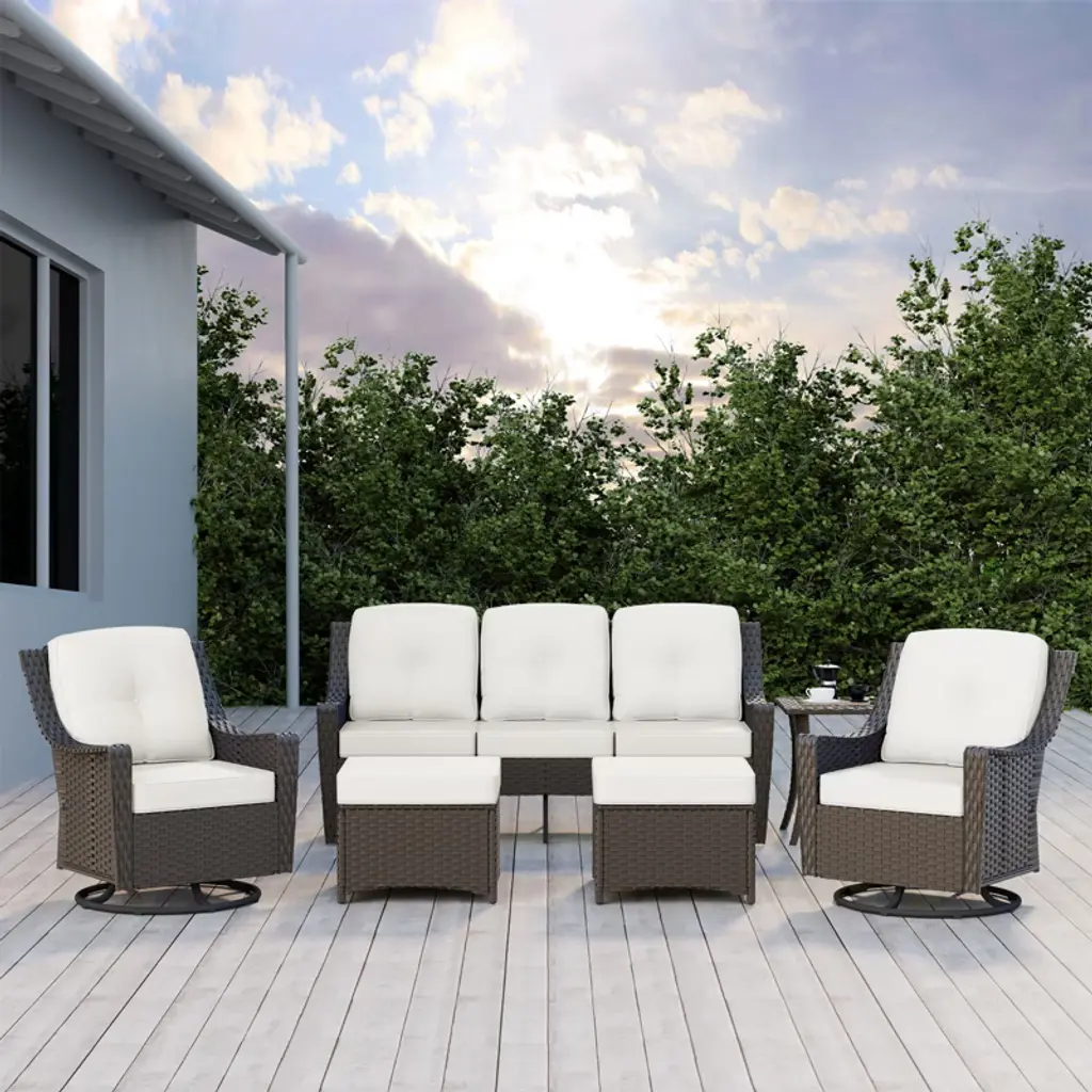 Yardsight 6-piece Outdoor Patio Furniture Cushioned Sofa, 2 Swivel Chairs, Ottomans & Side Table, All-weather Wicker For Patio, Garden & Backyard