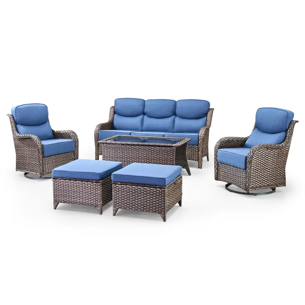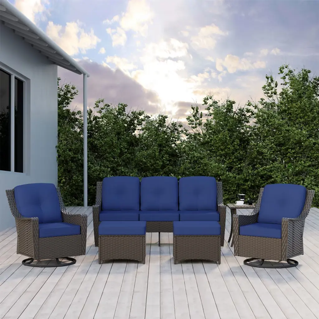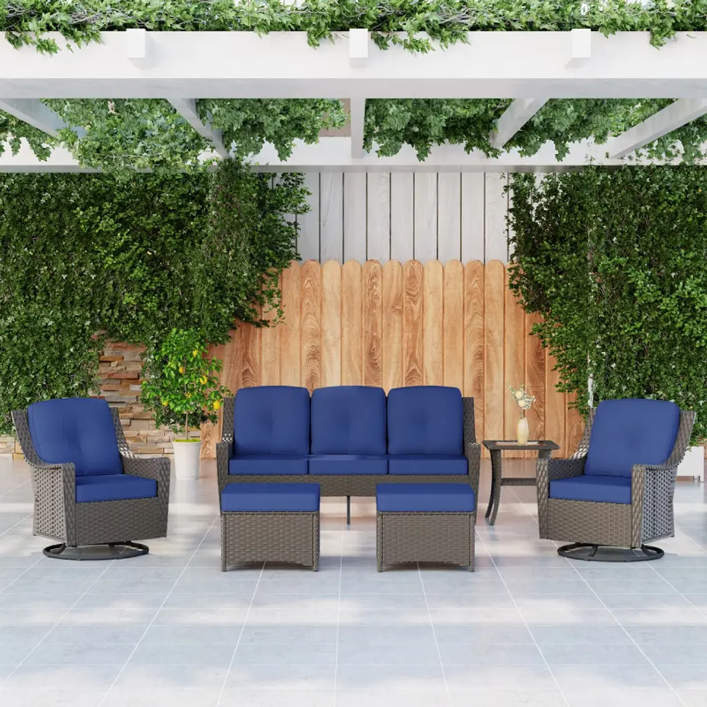 Yardsight 6-piece Outdoor Patio Furniture Cushioned Sofa, 2 Swivel Chairs, Ottomans & Side Table, All-weather Wicker For Patio, Garden & Backyard