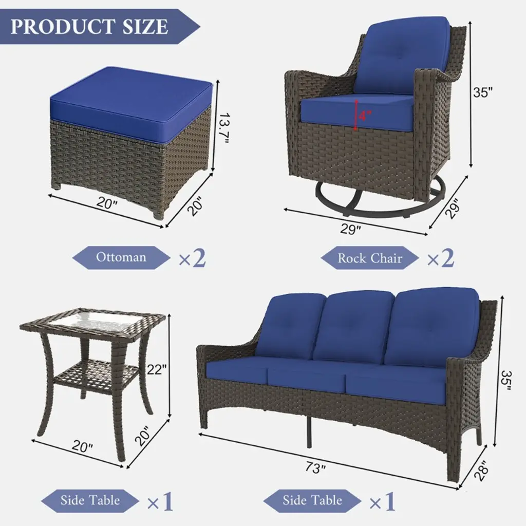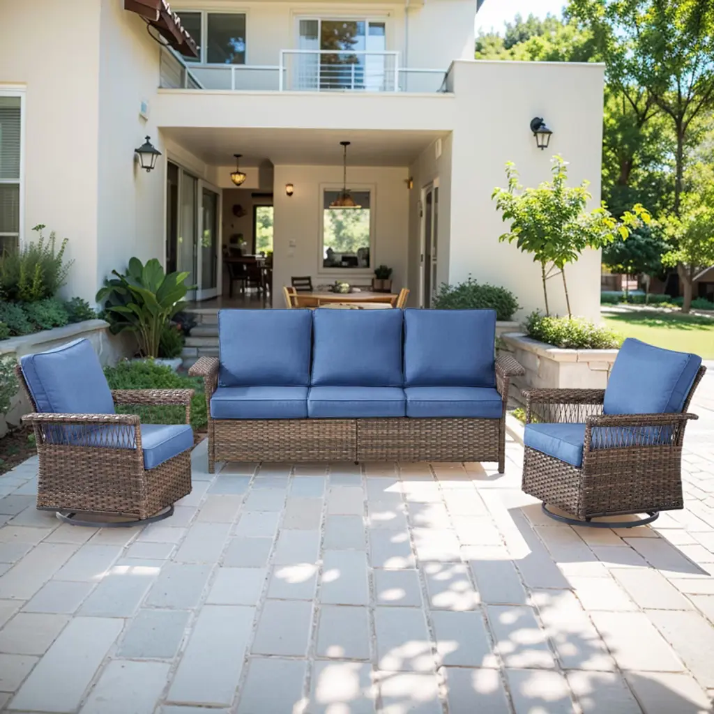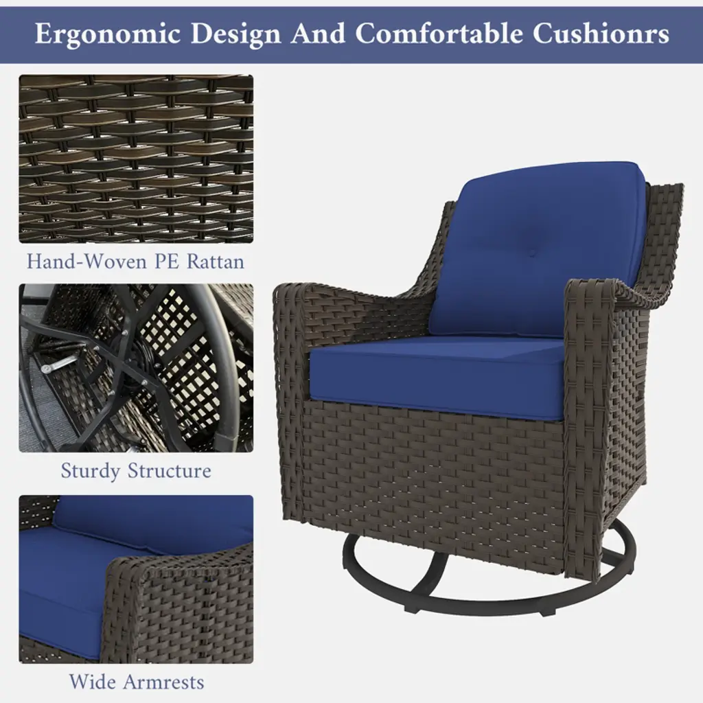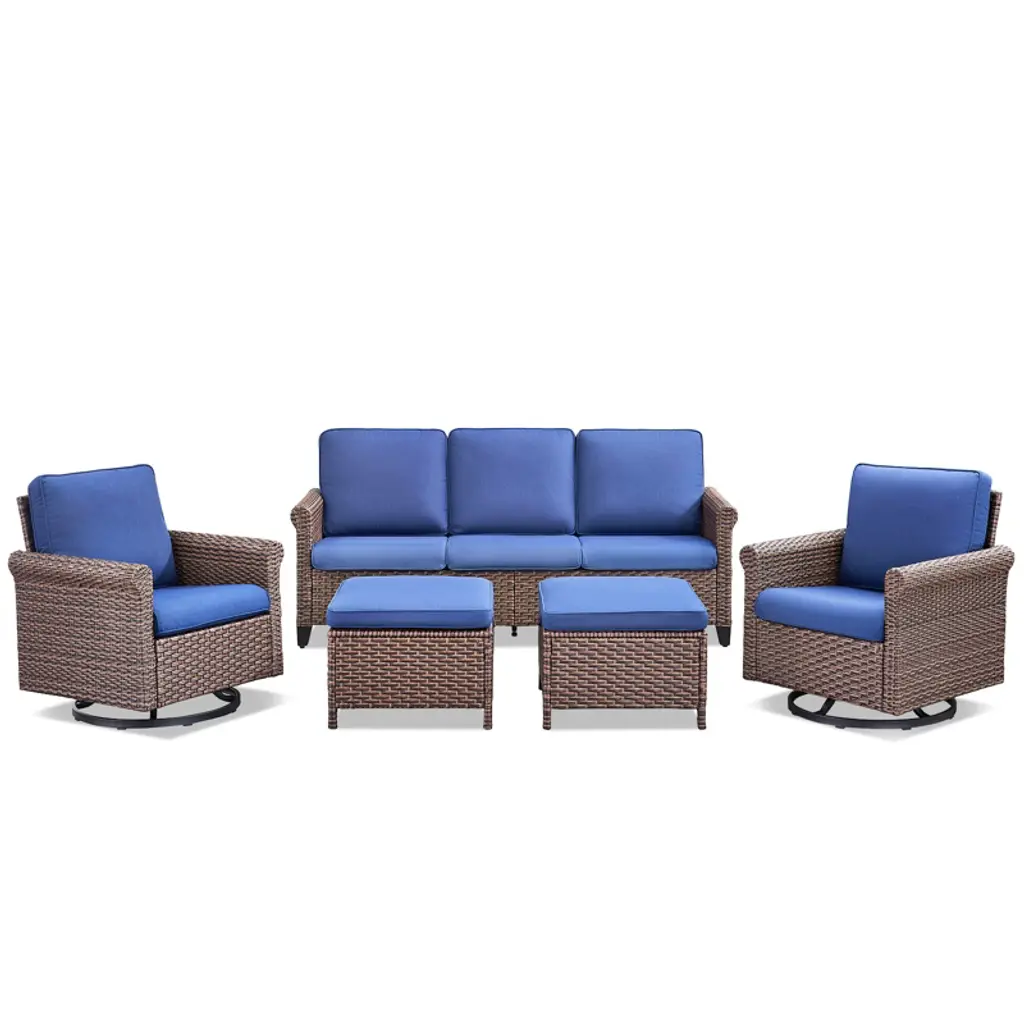 Yardsight 6-piece Outdoor Patio Furniture Cushioned Sofa, 2 Swivel Chairs, Ottomans & Side Table, All-weather Wicker For Patio, Garden & Backyard