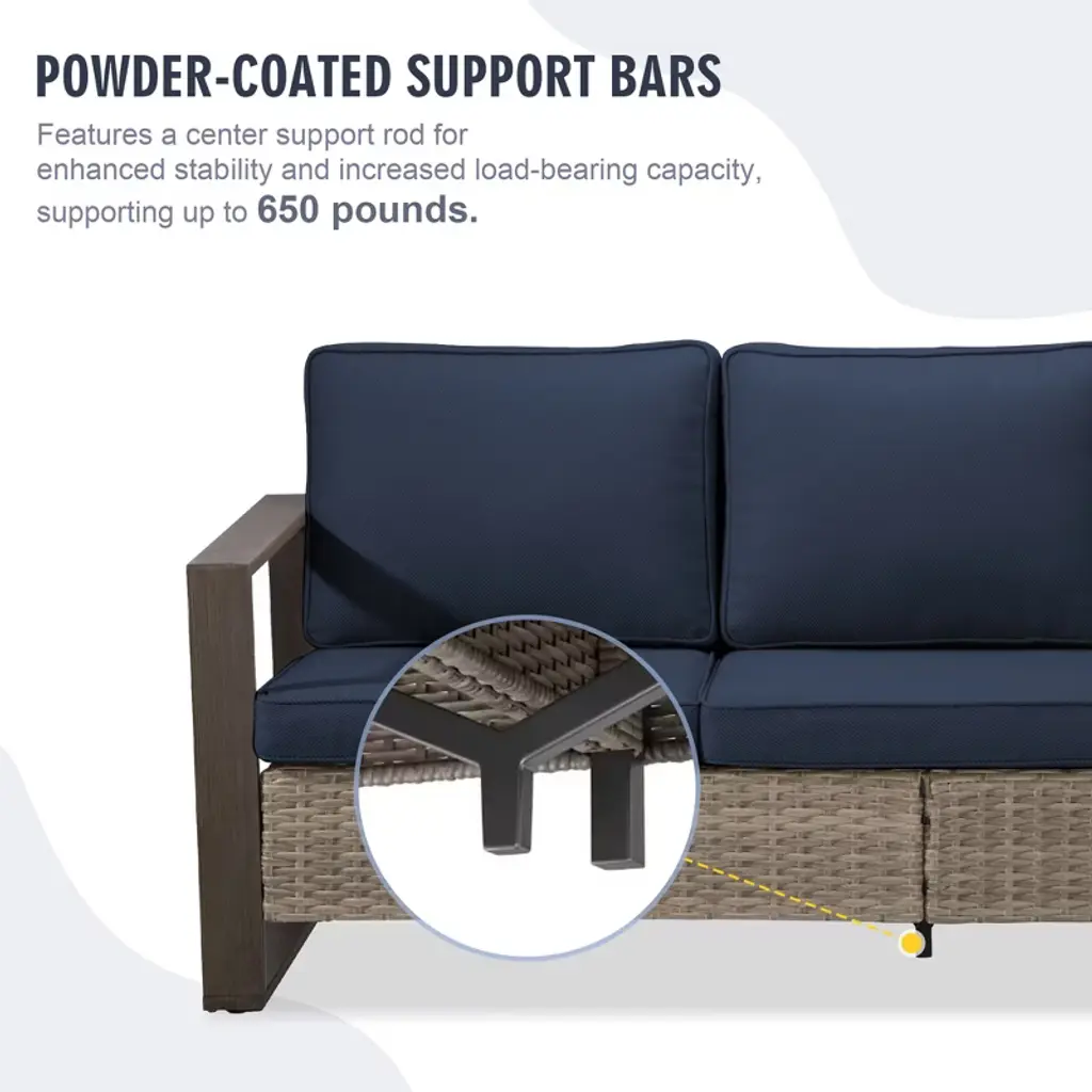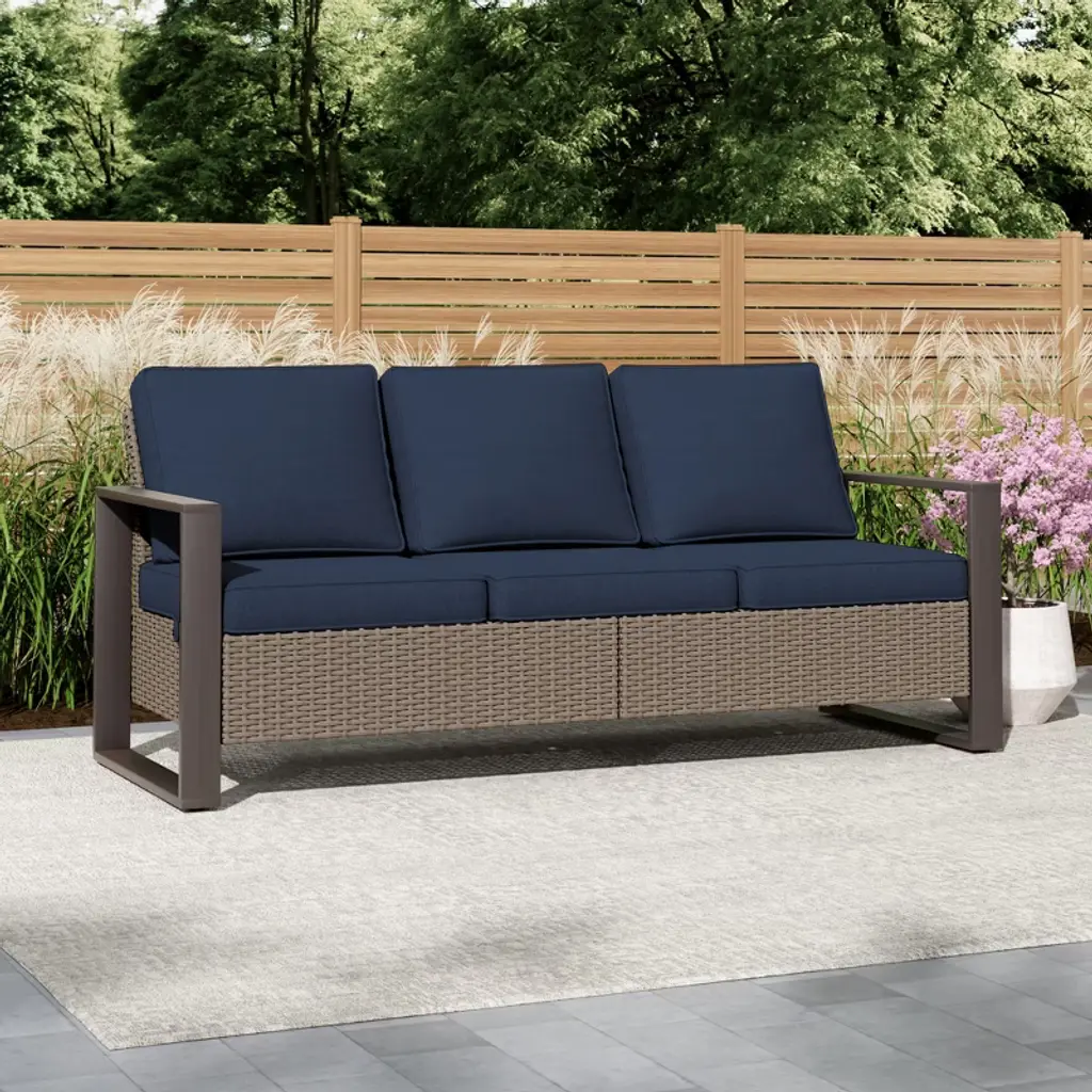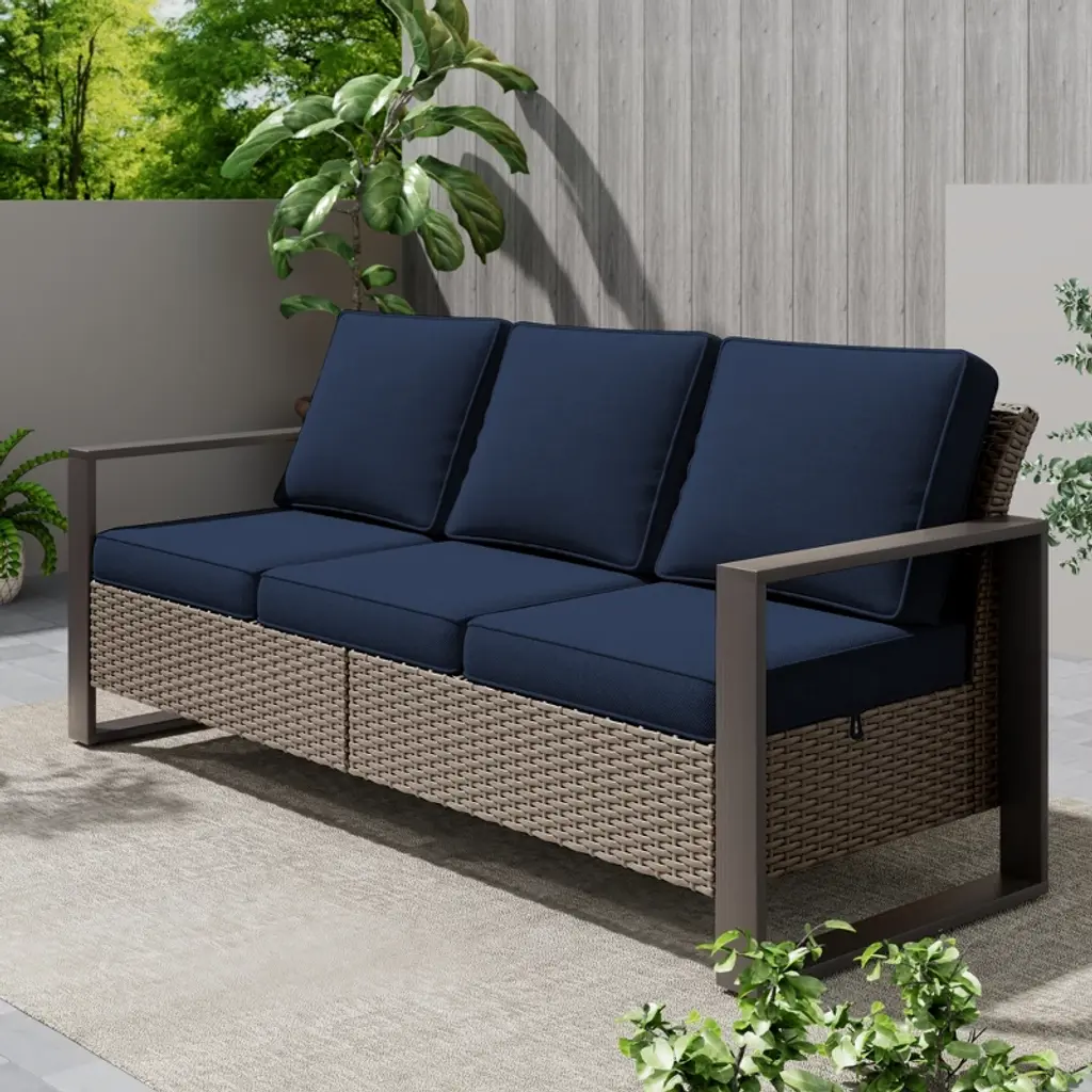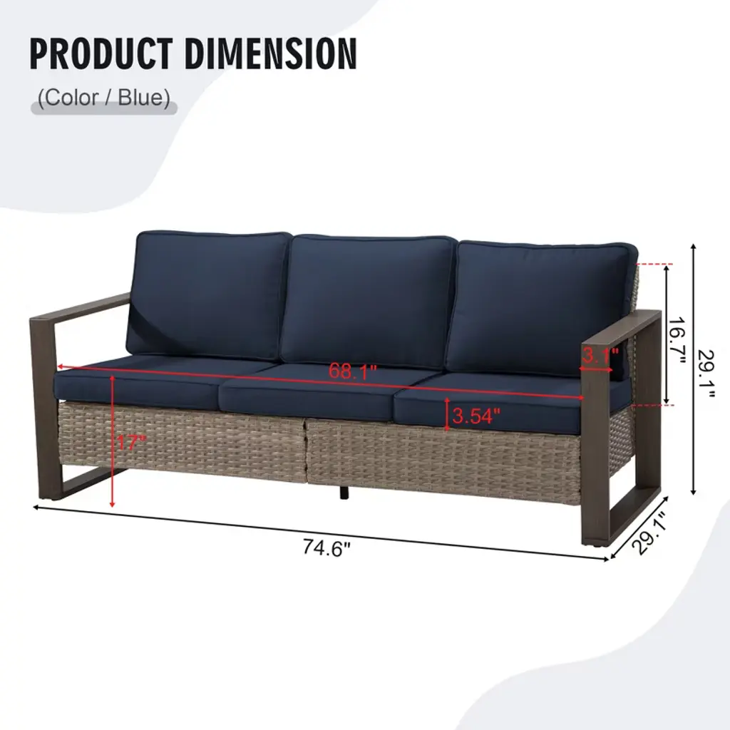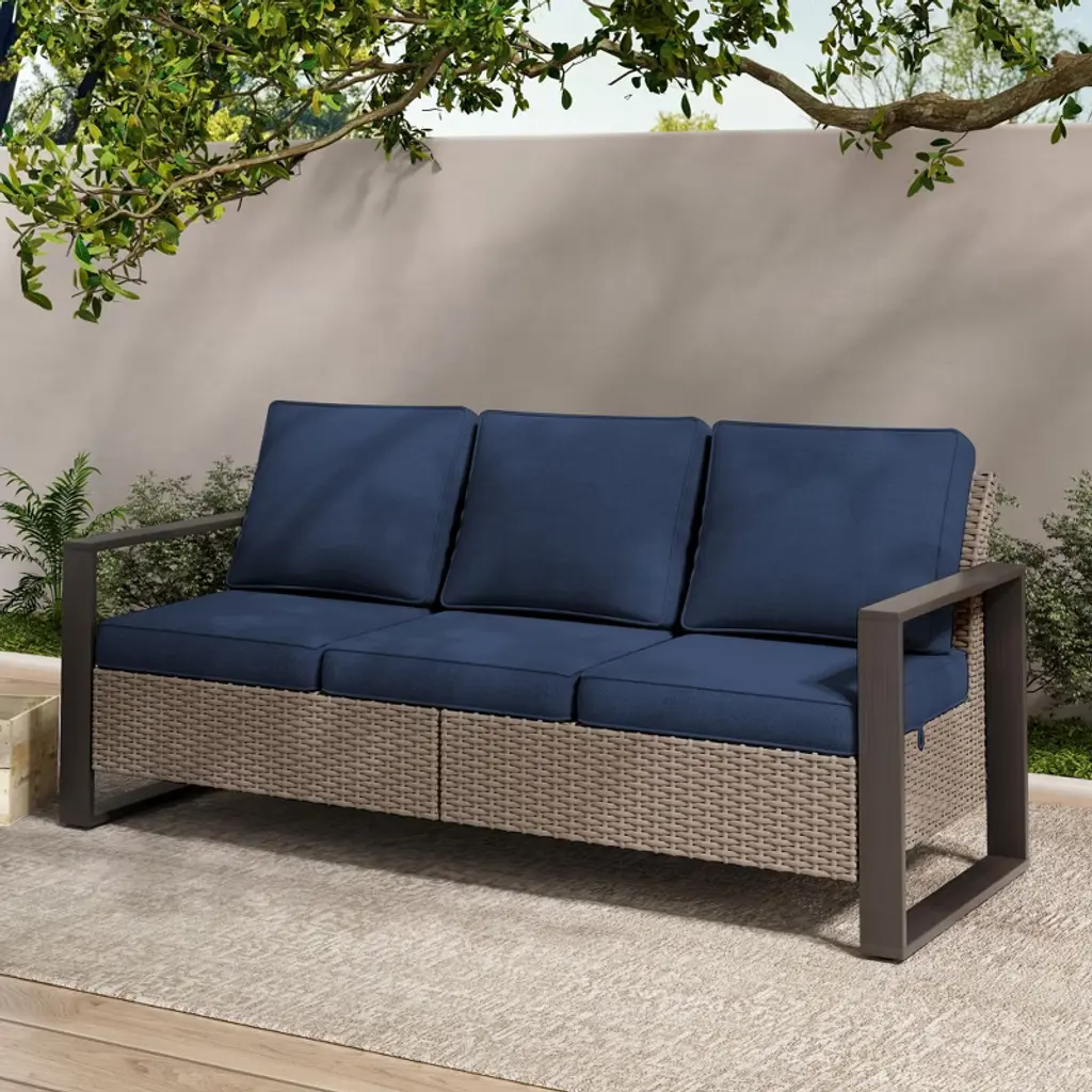 Bring comfort and style to your outdoor space with this 3-seater rattan sofa, designed for both relaxation and durability. Crafted with a sturdy wicker frame and topped with soft Olefin cushions, it creates the perfect spot for family gatherings, afternoon lounging, or weekend entertaining. The water-resistant cushion covers feature hidden zippers for easy removal and cleaning, while the high backrest and wide armrests provide excellent ergonomic support. Whether placed on your patio, deck, or garden, this sofa blends seamlessly into any outdoor setting and offers a cozy retreat you¡¯ll love.