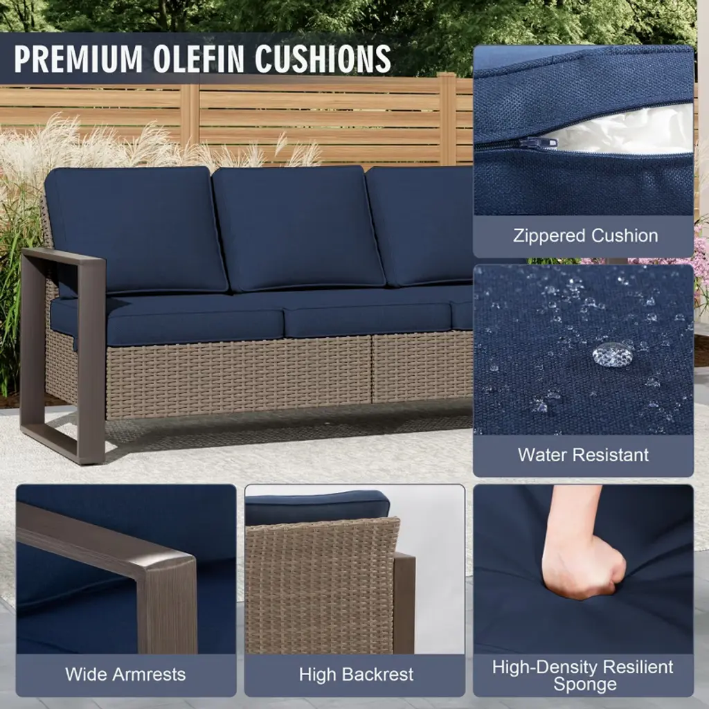 Yardsight Outdoor 3-seater Rattan Sofa With Olefin Cushions- Weather-resistant Wicker Patio Couch With Wide Armrests & High Back Support