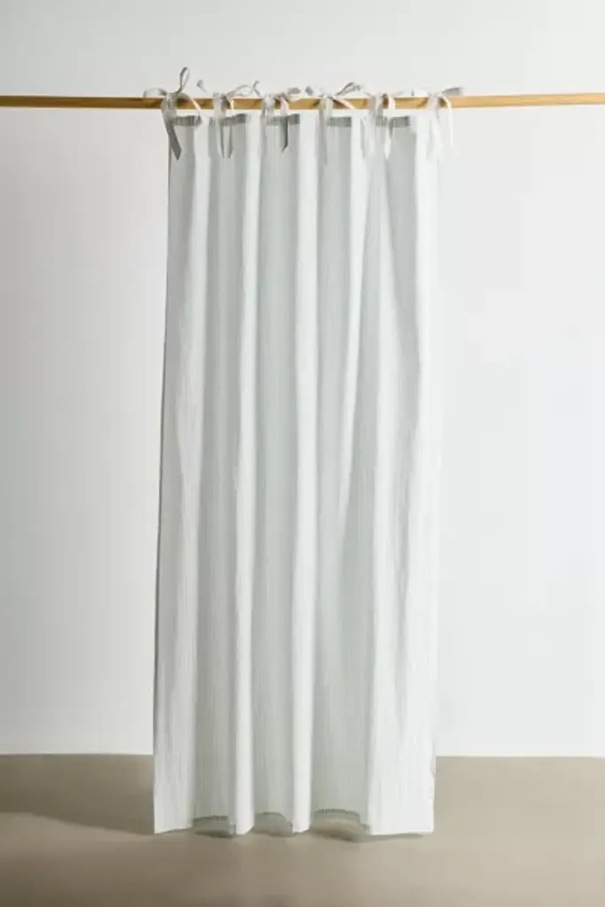 Refresh your window fixtures with this cotton curtain panel featuring a classic striped motif that lends a timeless finishing touch to your space. This cotton curtain panel is fitted with a tie top for easy setup. Available exclusively at Urban Outfitters. **Features** \- Yarn Dye Striped Knotted Window Panel from UO Home \- Semi-sheer light filtering curtain panel diffuses natural light in your space \- Cotton curtain panel with a classic striped motif \- Pre-tied top for easy hanging \- An eco-friendly upgrade, this item is OEKO-TEX® Standard 100 certified free of harsh chemicals \- UO exclusive **Content + Care** \- Includes one window panel \- 100% Cotton \- OEKO-TEX® Standard 100 Certified \- Meets OEKO-TEX® Standard 100 guidelines which independently test each component for harmful substances for textiles you can trust \- Machine wash \- Imported **Size** \- Dimensions: 84"l x 52"w
