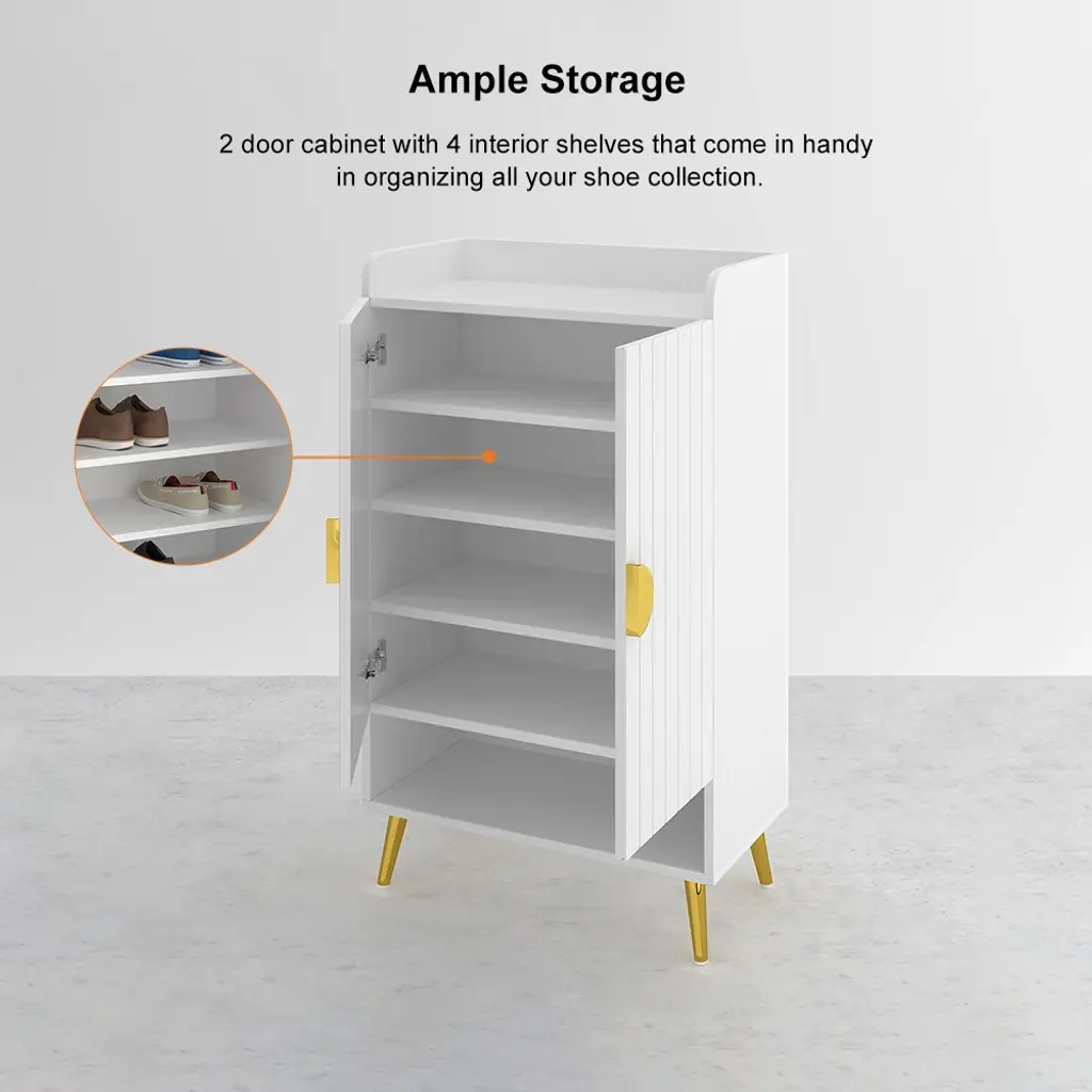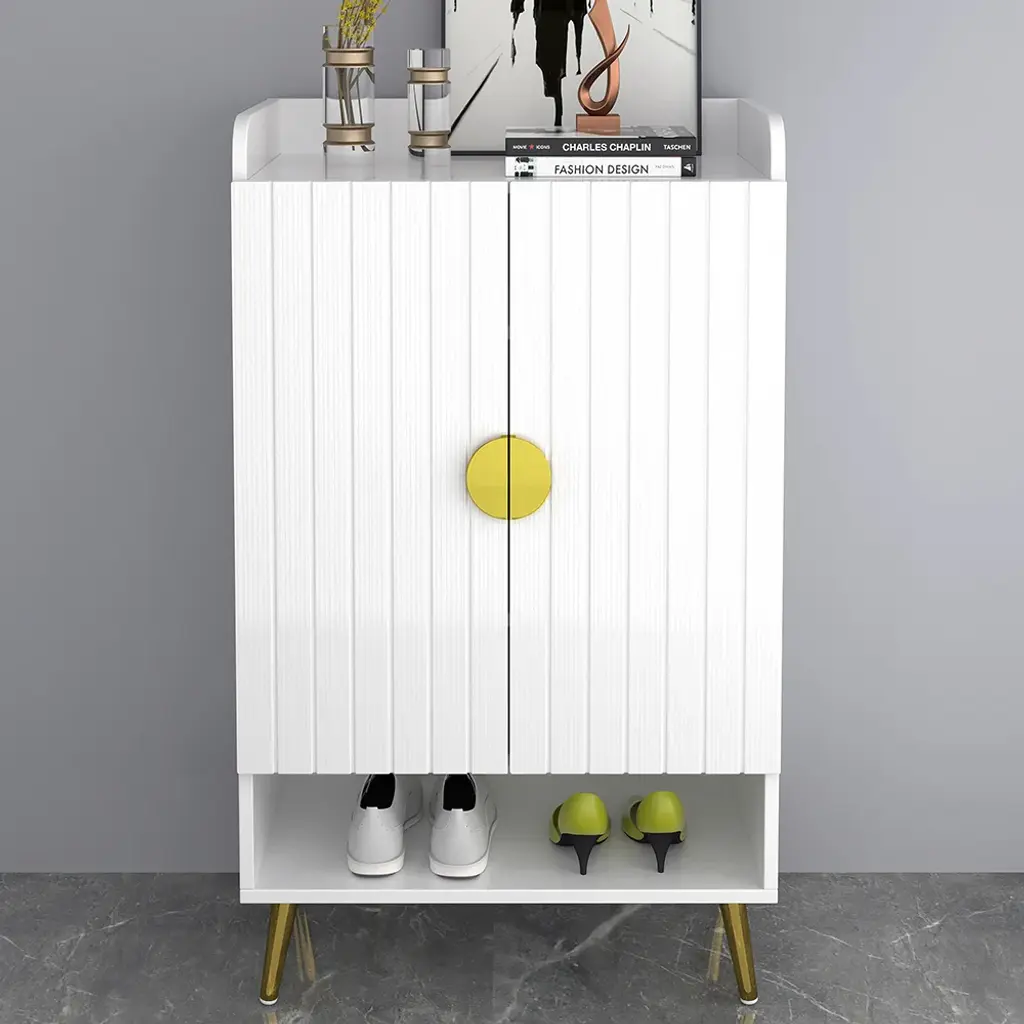 Meet the elegant and functional shoe cabinet that's revolutionizing home storage - our premium Wood and Gold Shoe Cabinet. With its classic modern aesthetic and high-end construction, it's the perfect solution for shoe lovers seeking a stylish furniture piece that provides ample space to store their shoes.