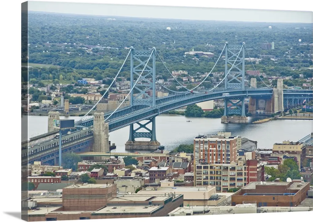 Photo of Fort Duquesne Bridge, Three Sisters Bridges, and David Mccullough Bridge with Point State Park.