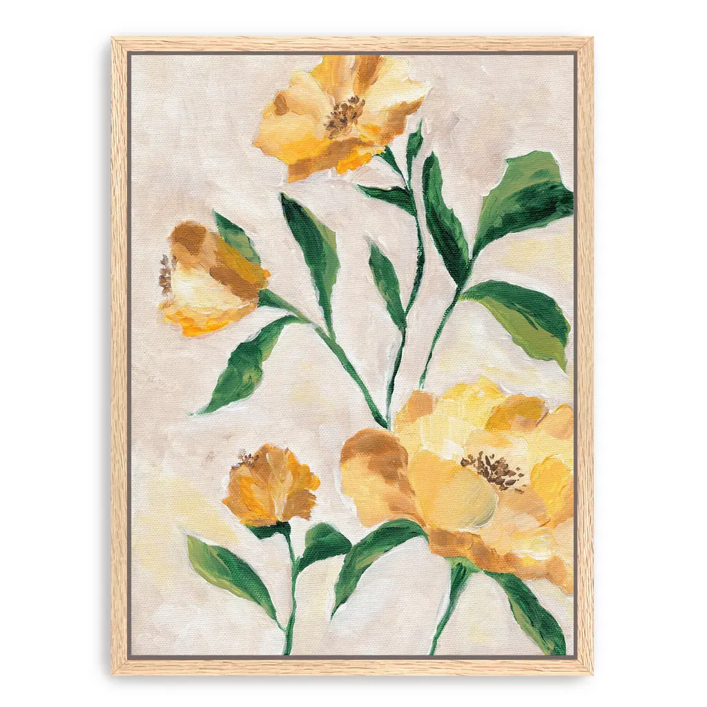 Infuse your living space with the elegance of this stunning "Yellow Camellia" canvas art by Nikita Jariwala, set against a neutral background. The vibrant yellow blossoms bring a touch of nature's brilliance, while the subdued backdrop enhances their beauty, creating a harmonious balance. This piece is perfect for adding a sophisticated and calming atmosphere to any room, complementing both modern and traditional interiors. Available in black frame, dark walnut frame, oak frame, or as a wrapped canvas. Our Gallery Wrap Canvas Prints are proudly assembled with high quality materials in California, USA. Each piece is printed on a thick, archival grade canvas using Giclee technology. It is then hand-stretched by our experienced artisans over solid wood bars, which will not warp over time. The final product is a piece personally crafted for you to confidently display on your wall. Care and Assembly: Ensure that the location of your piece has little to no exposure to heat, sunlight, and moisture. Wipe clean, only if needed. Each piece includes a sawtooth hanger to hang on your wall vertically.