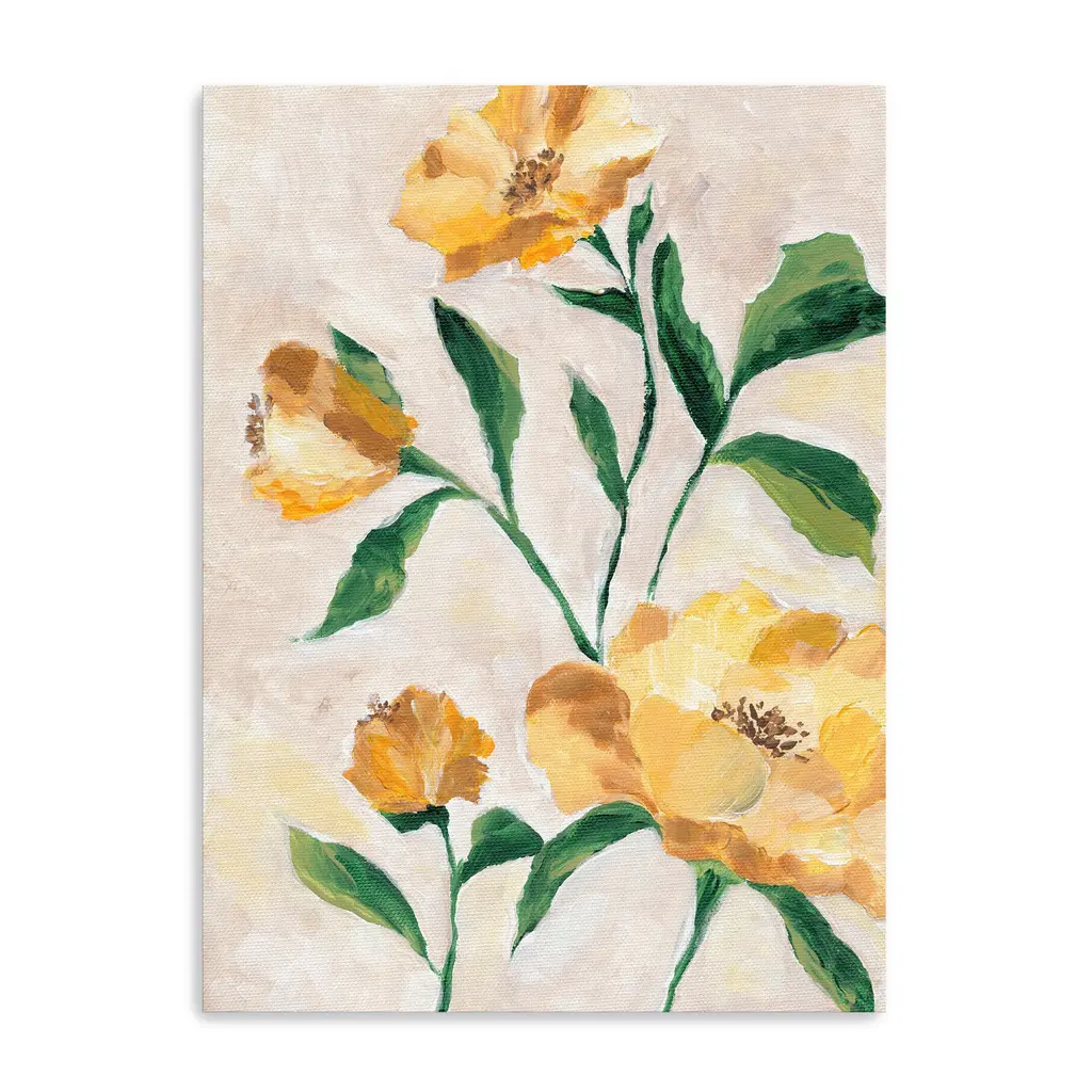 Infuse your living space with the elegance of this stunning "Yellow Camellia" canvas art by Nikita Jariwala, set against a neutral background. The vibrant yellow blossoms bring a touch of nature's brilliance, while the subdued backdrop enhances their beauty, creating a harmonious balance. This piece is perfect for adding a sophisticated and calming atmosphere to any room, complementing both modern and traditional interiors. Available in black frame, dark walnut frame, oak frame, or as a wrapped canvas. Our Gallery Wrap Canvas Prints are proudly assembled with high quality materials in California, USA. Each piece is printed on a thick, archival grade canvas using Giclee technology. It is then hand-stretched by our experienced artisans over solid wood bars, which will not warp over time. The final product is a piece personally crafted for you to confidently display on your wall. Care and Assembly: Ensure that the location of your piece has little to no exposure to heat, sunlight, and moisture. Wipe clean, only if needed. Each piece includes a sawtooth hanger to hang on your wall vertically.