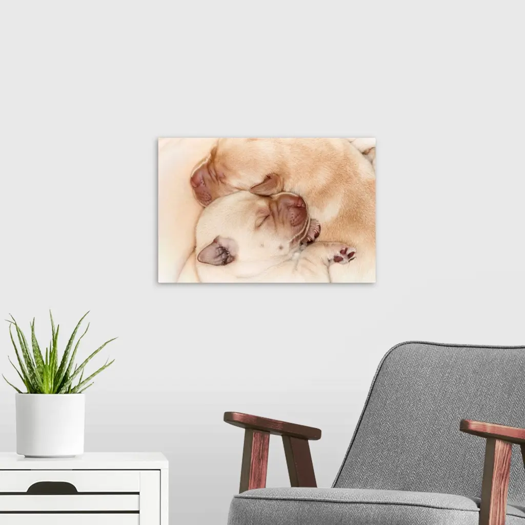 Yellow Labrador Retriever puppies, 10 days old wall art for home and office decor. Discover canvas art prints, photos, mural, big canvas art and framed wall art in GreatBigCanvas.com's varied collections.