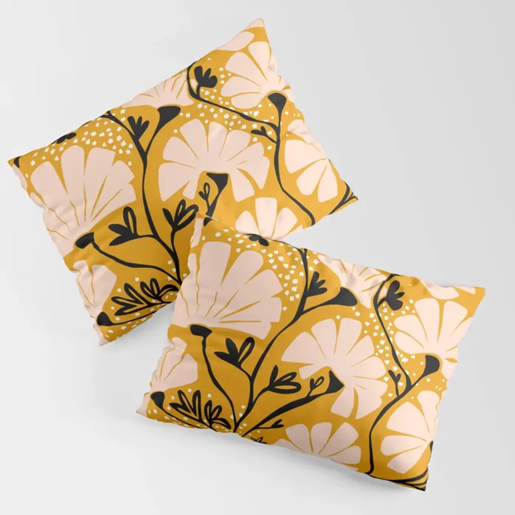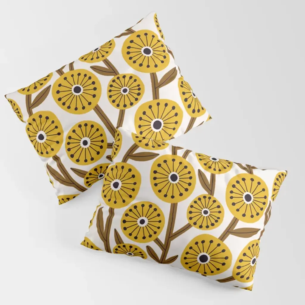 Yellow Queen Anne's Lace Illustration Pillow Sham