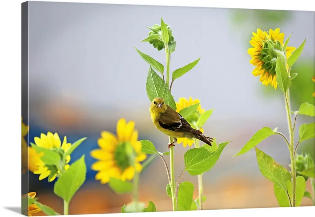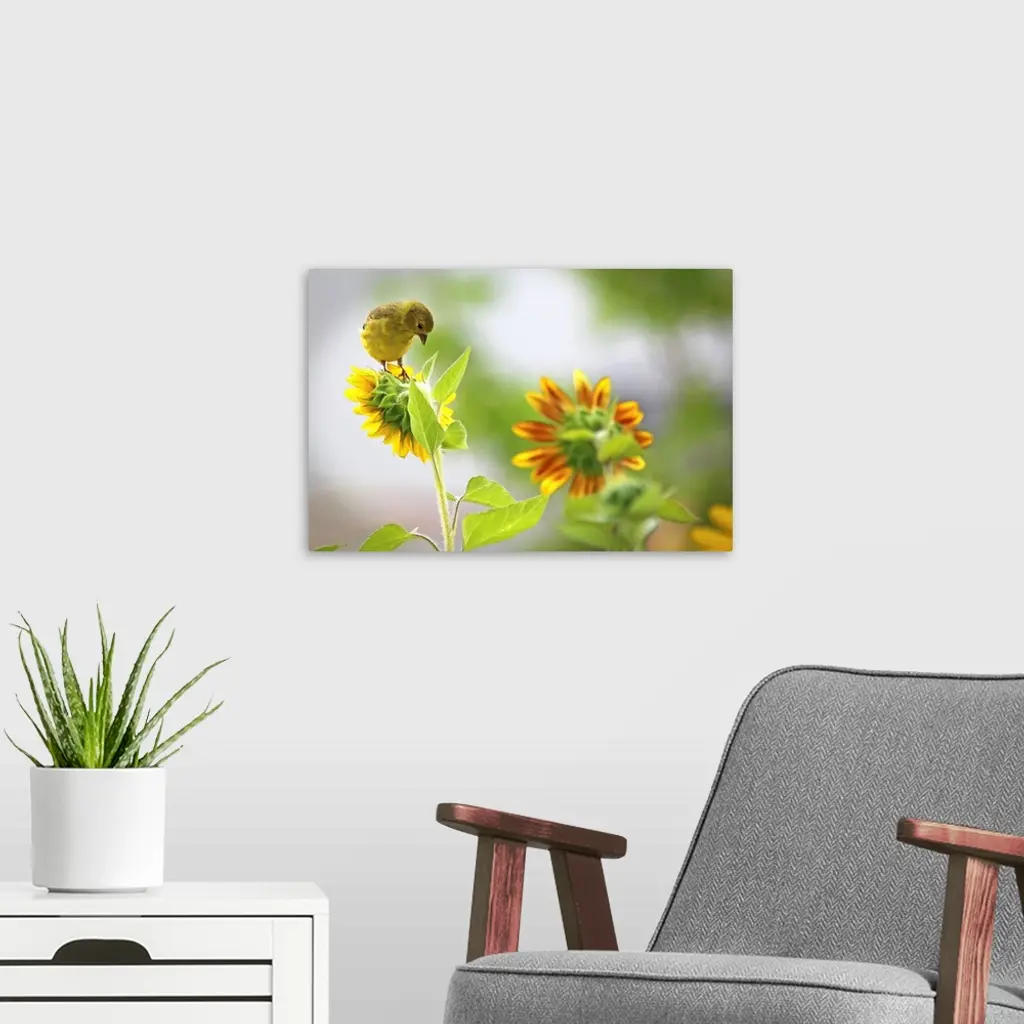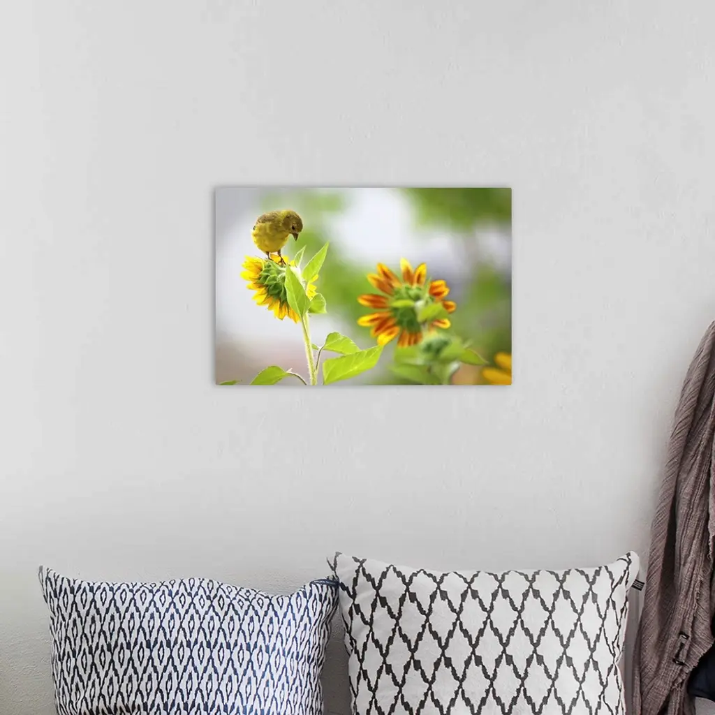 Yellow Throated Vireo & Sunflowers I wall art for home and office decor. Discover canvas art prints, photos, mural, big canvas art and framed wall art in GreatBigCanvas.com's varied collections.