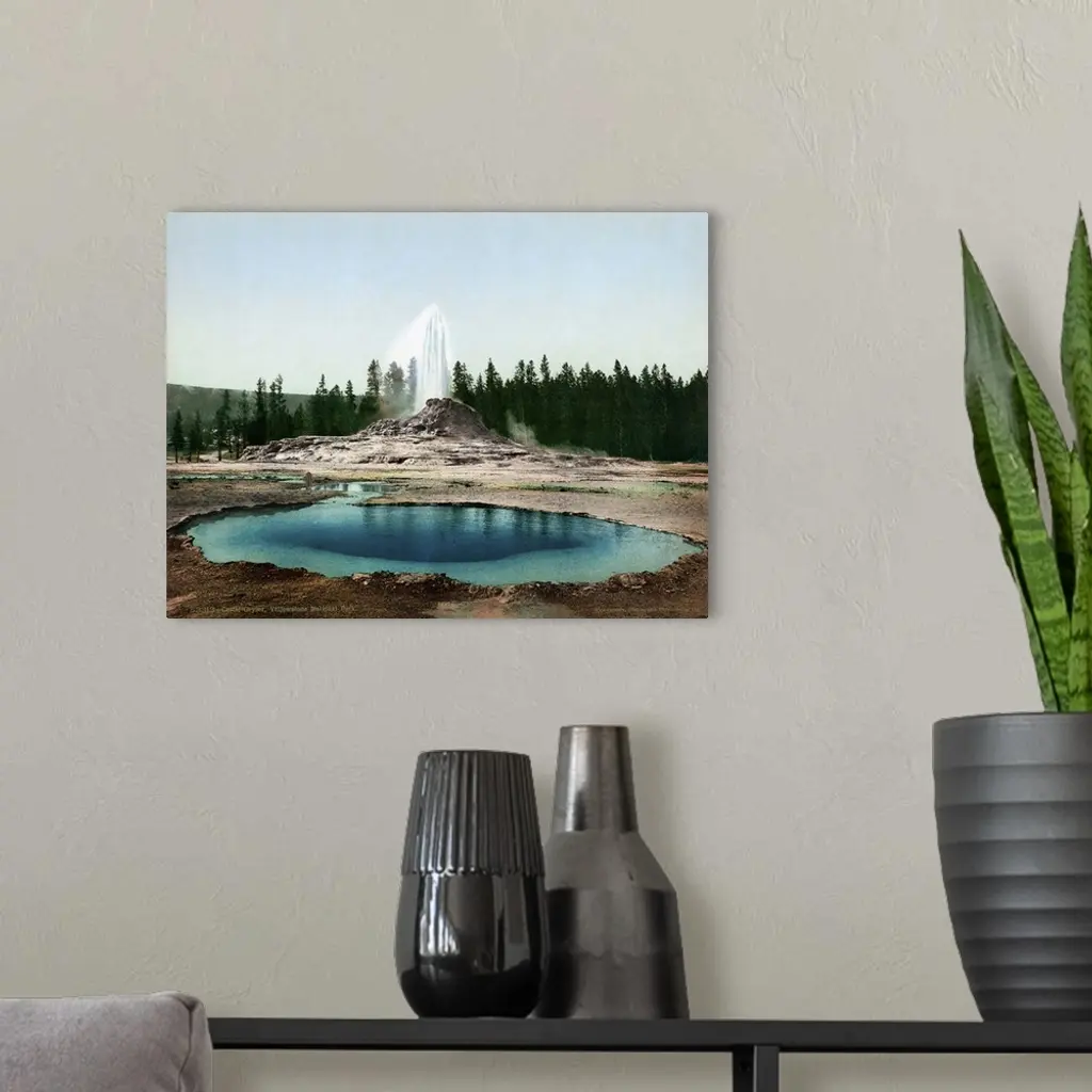 Yellowstone Park, Geyser. View Of the Sinter Cone Castle Geyser Eruption In Yellowstone National Park, Wyoming. Photochrome, C1898.